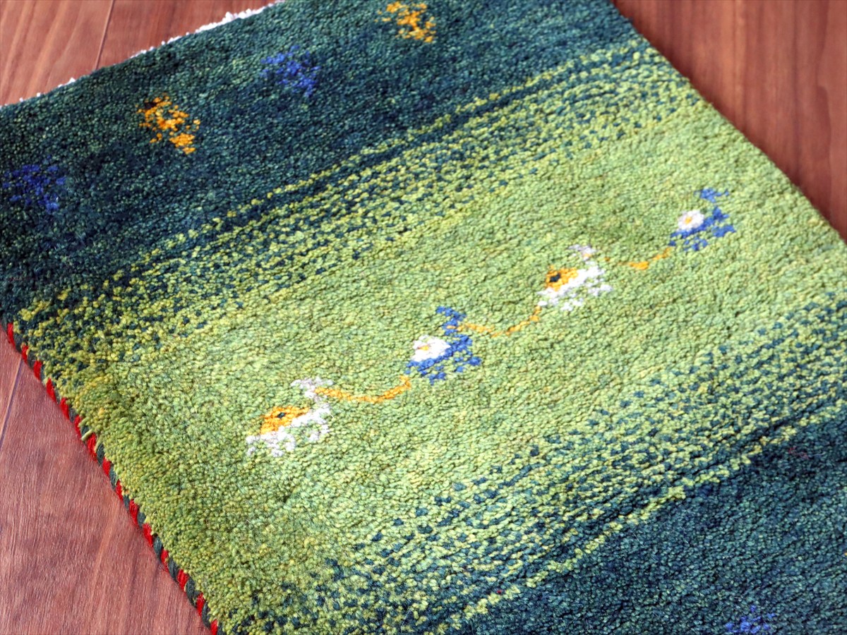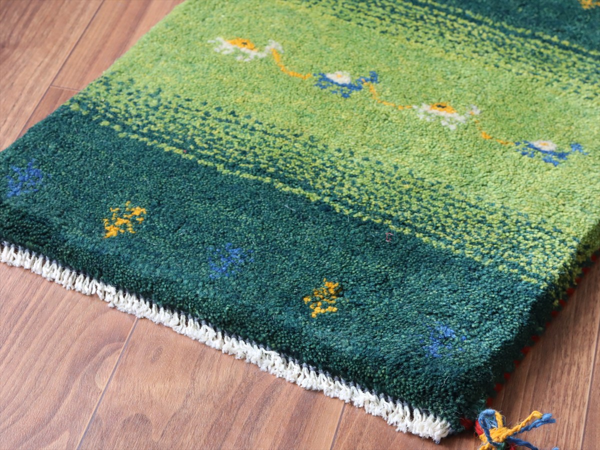 Key:Gabbeh, Tribal rug, Shiraz, Fars, Iran, Persia, Wool, ギャッベ, ギャベ, グリーン 緑 天然染料 草木染 ラグ, 絨毯, イラン, シラーズ, ペルシャ, バザールギャッベ, ポンポン, 手織り, 一点もの, 玄関マット, ふかふか, ガラタバザール