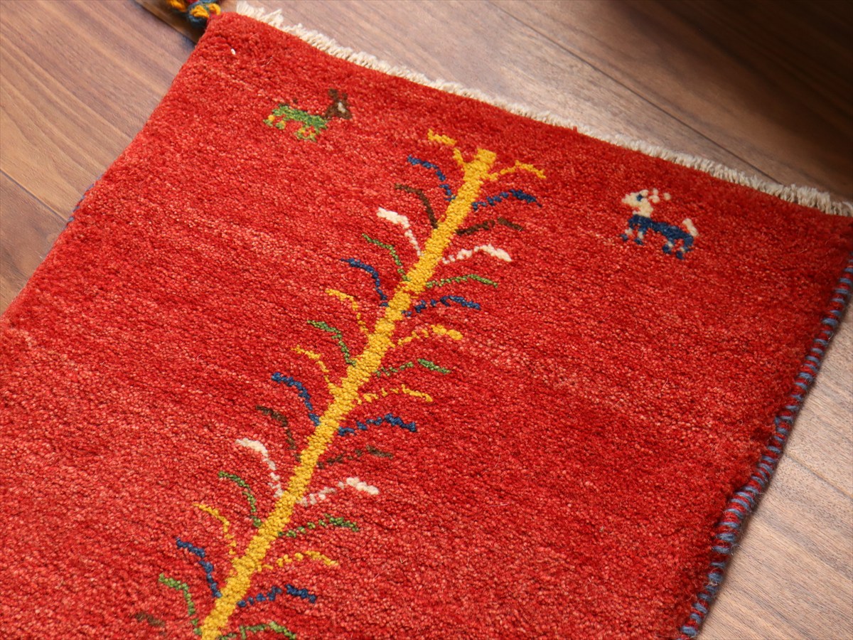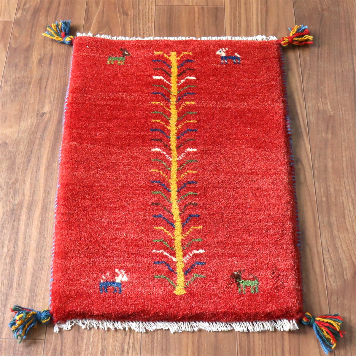 ギャッベ ミニギャベ イラン手織り 60×42cm レッド 連なる生命の樹と動物