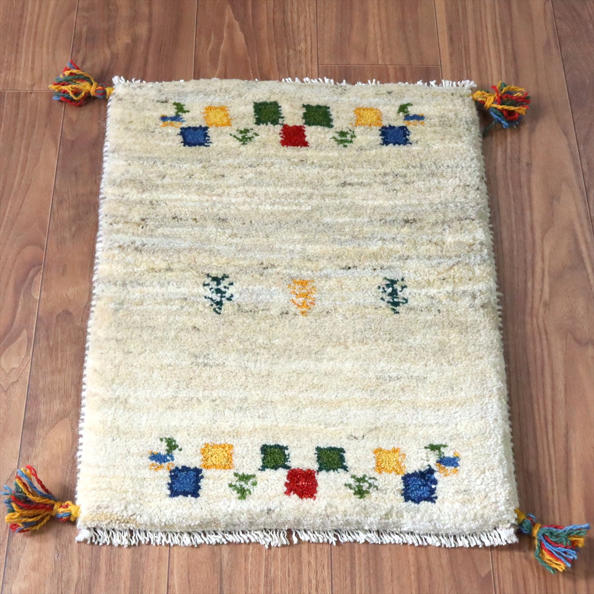- ギャッベ ミニギャベ イラン手織り 57×43cm ナチュラルアイボリー 生命の樹と動物