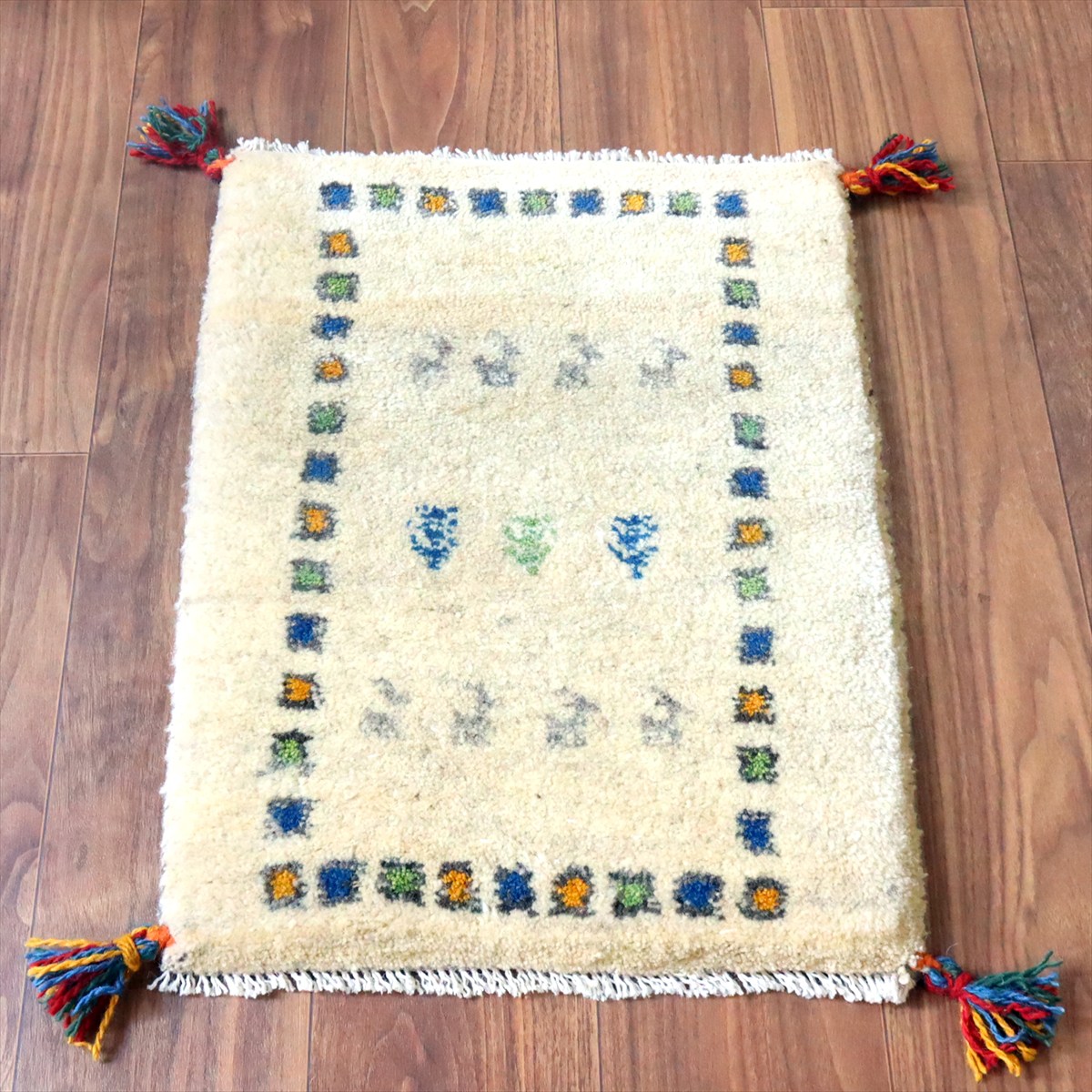 ギャッベ ミニギャベ イラン手織り 57×43cm ナチュラルアイボリー 動物と生命の樹
