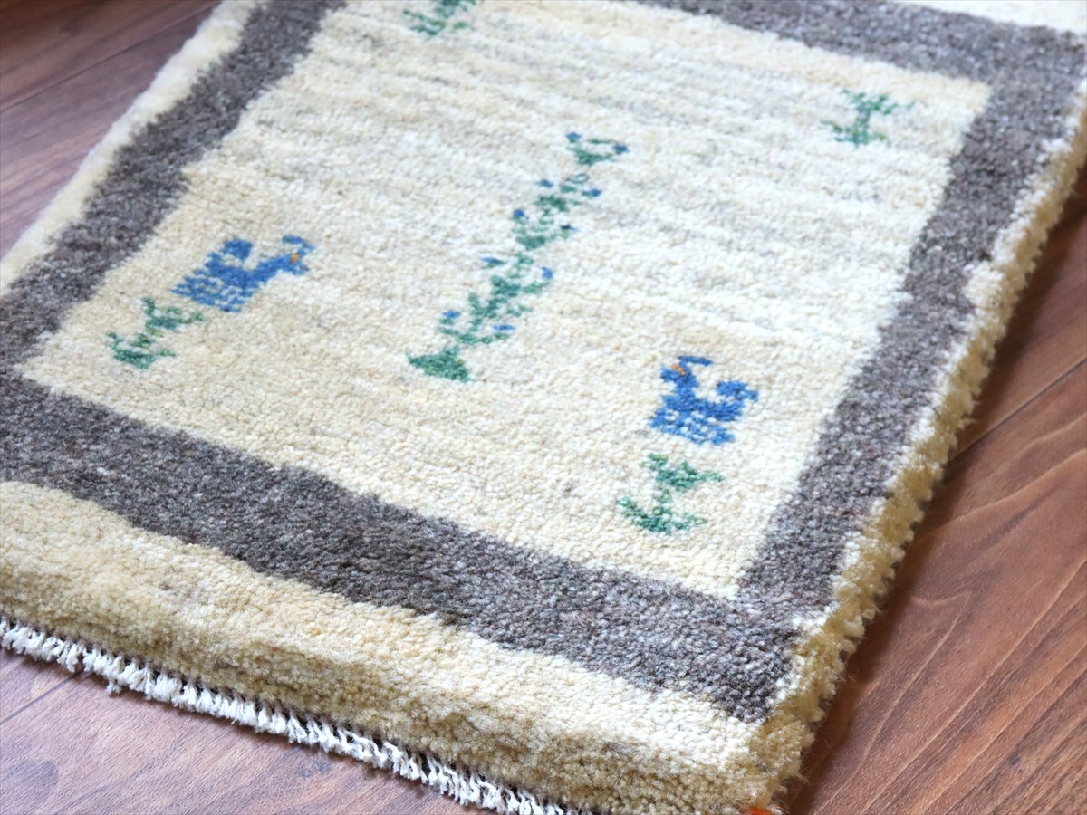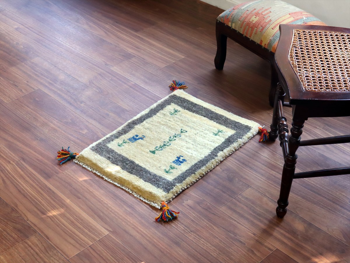 - ギャッベ ミニギャベ イラン手織り 55×40cm ナチュラルアイボリー 生命の樹と動物