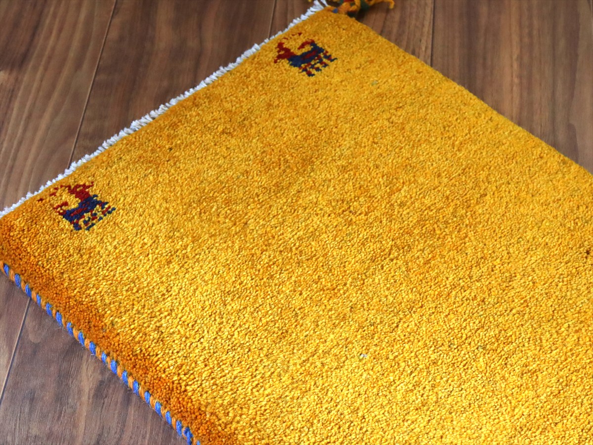 ギャッベ ミニギャベ イラン手織り 56×41cm イエロー 四隅に動物