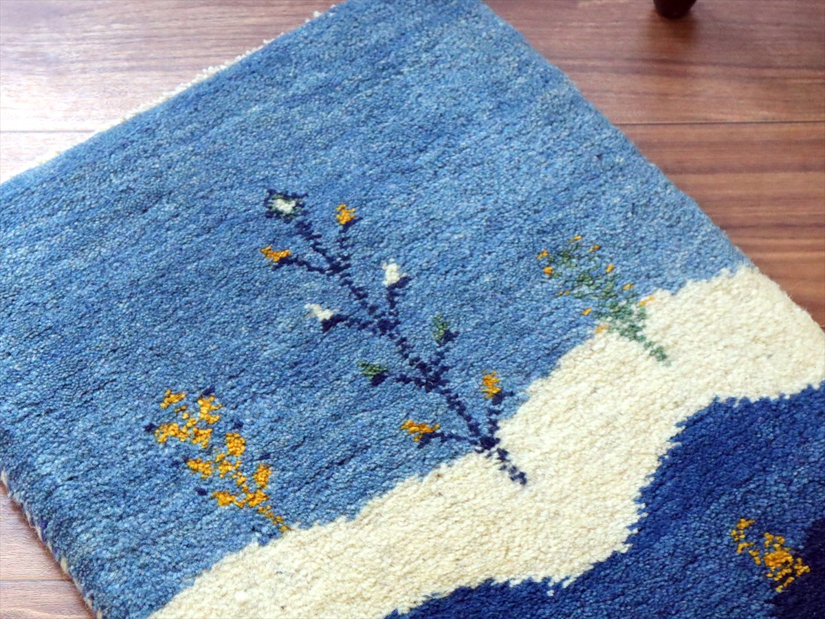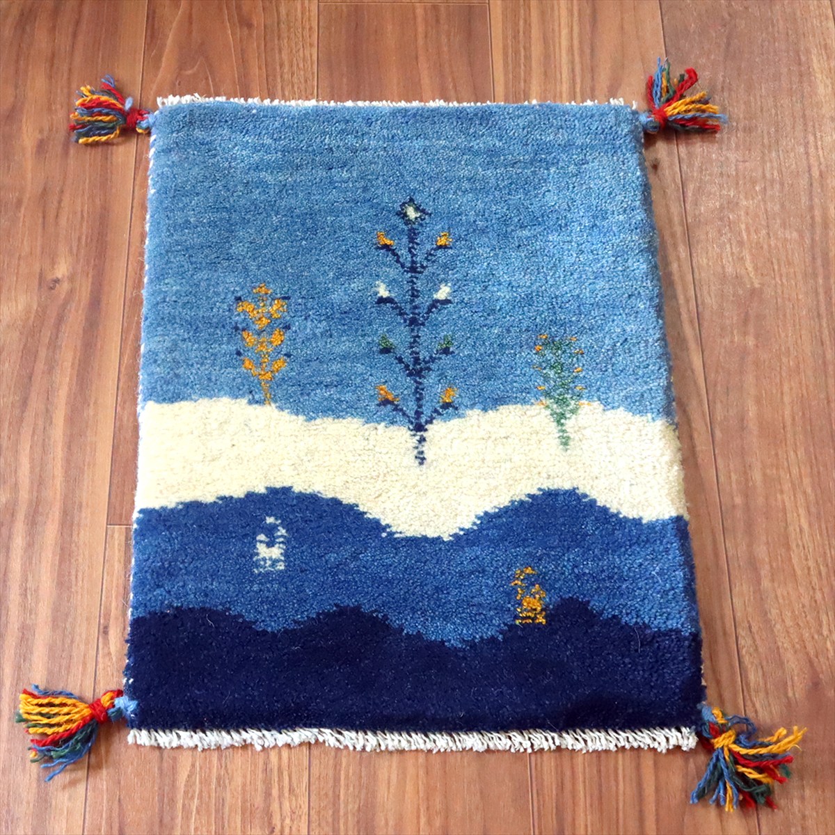 ギャッベ ミニギャベ イラン手織り 54×41cm ブルー 生命の樹と動物