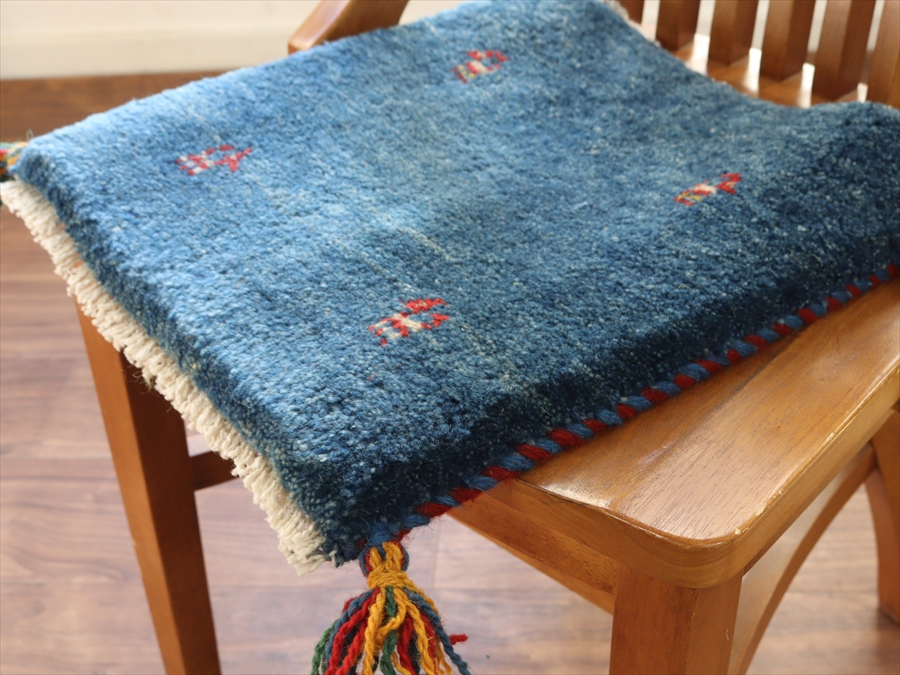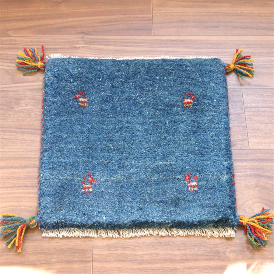 ギャッベ イラン産手織り 座布団サイズ 39x39cm ブルー 無地 シンプル