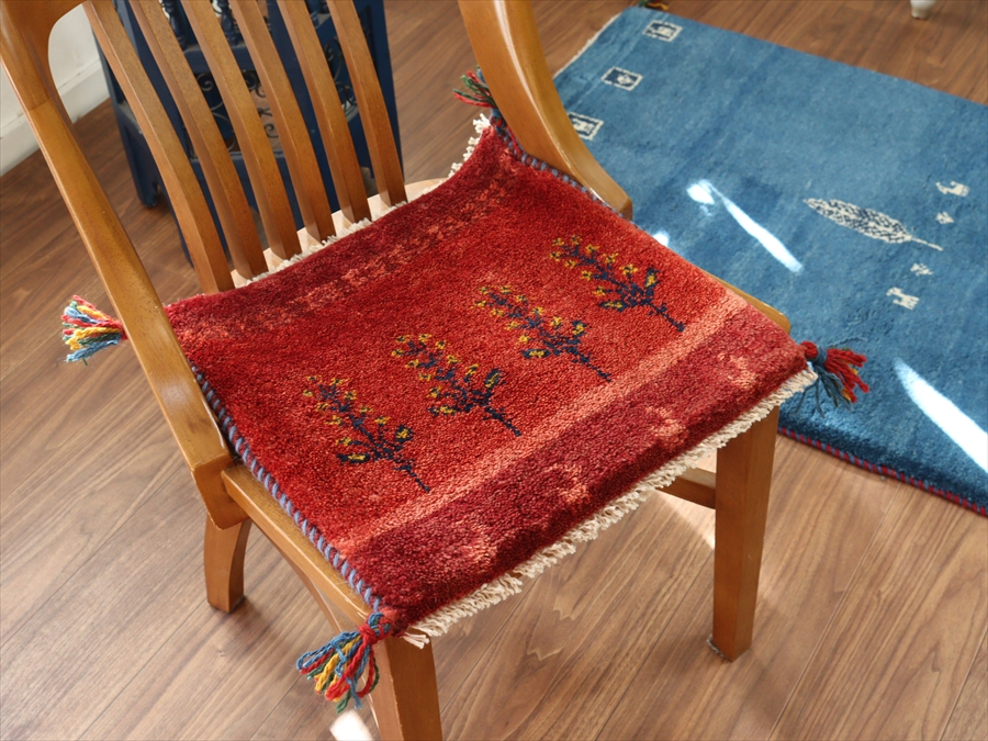ギャッベ イラン産手織り 座布団サイズ 40x43cm レッド 背の高い草花