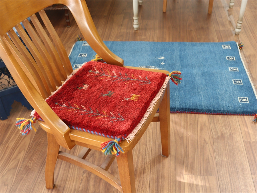 ギャッベ イラン産手織り 座布団サイズ 36x39cm レッド シンプル 動物と生命の木