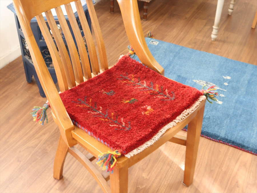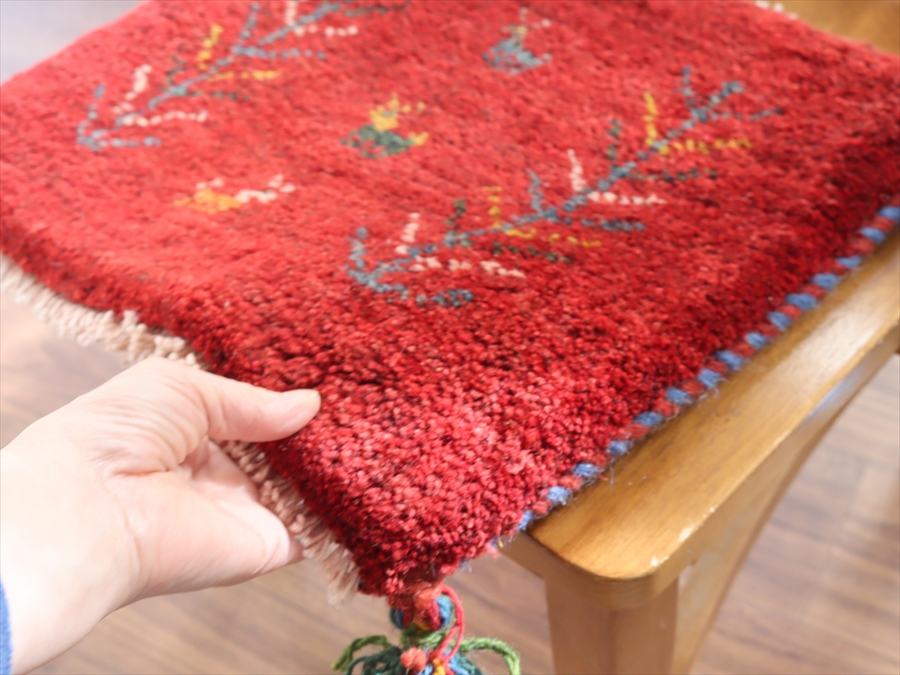 ギャッベ イラン産手織り 座布団サイズ 36x40cm レッド 動物と草花