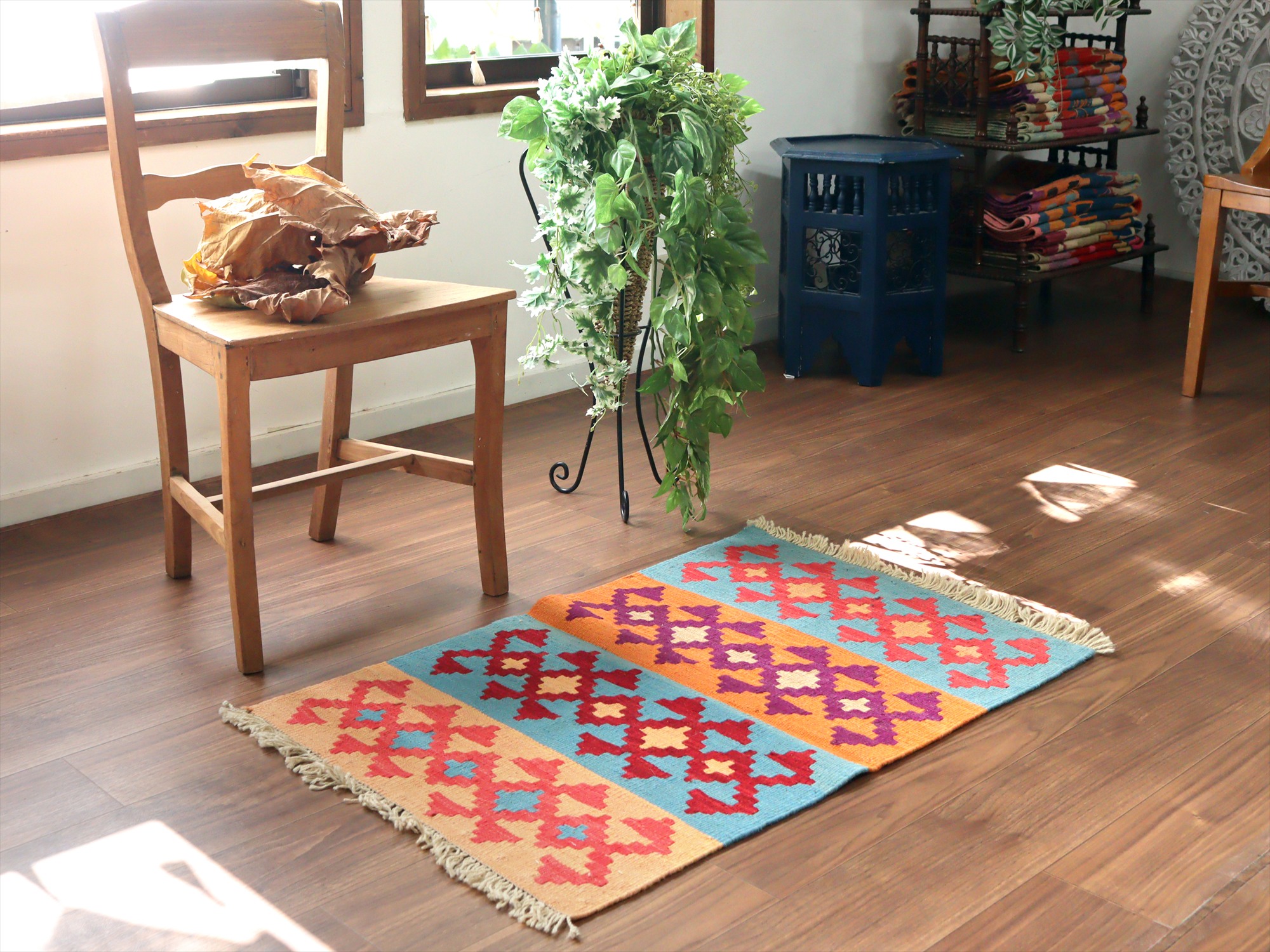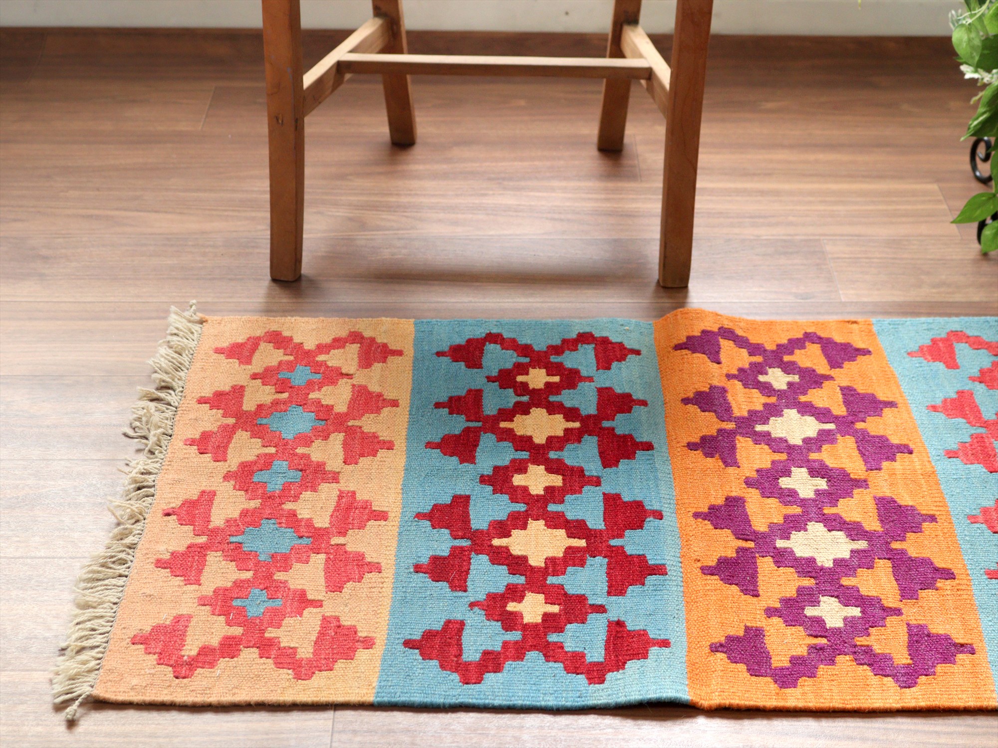 手織りキリム イラン シラーズ92×61cm カラフルな幾何学モチーフ