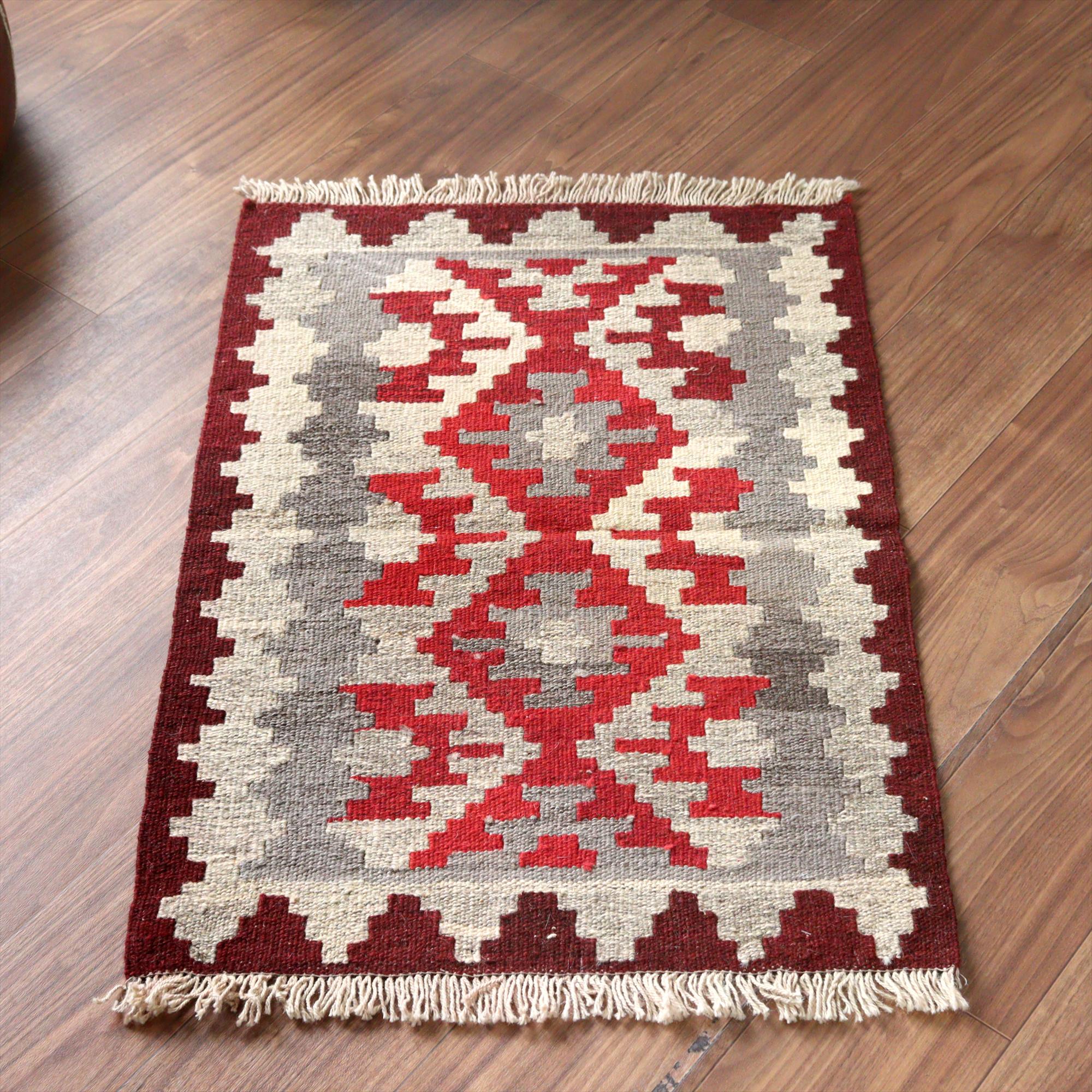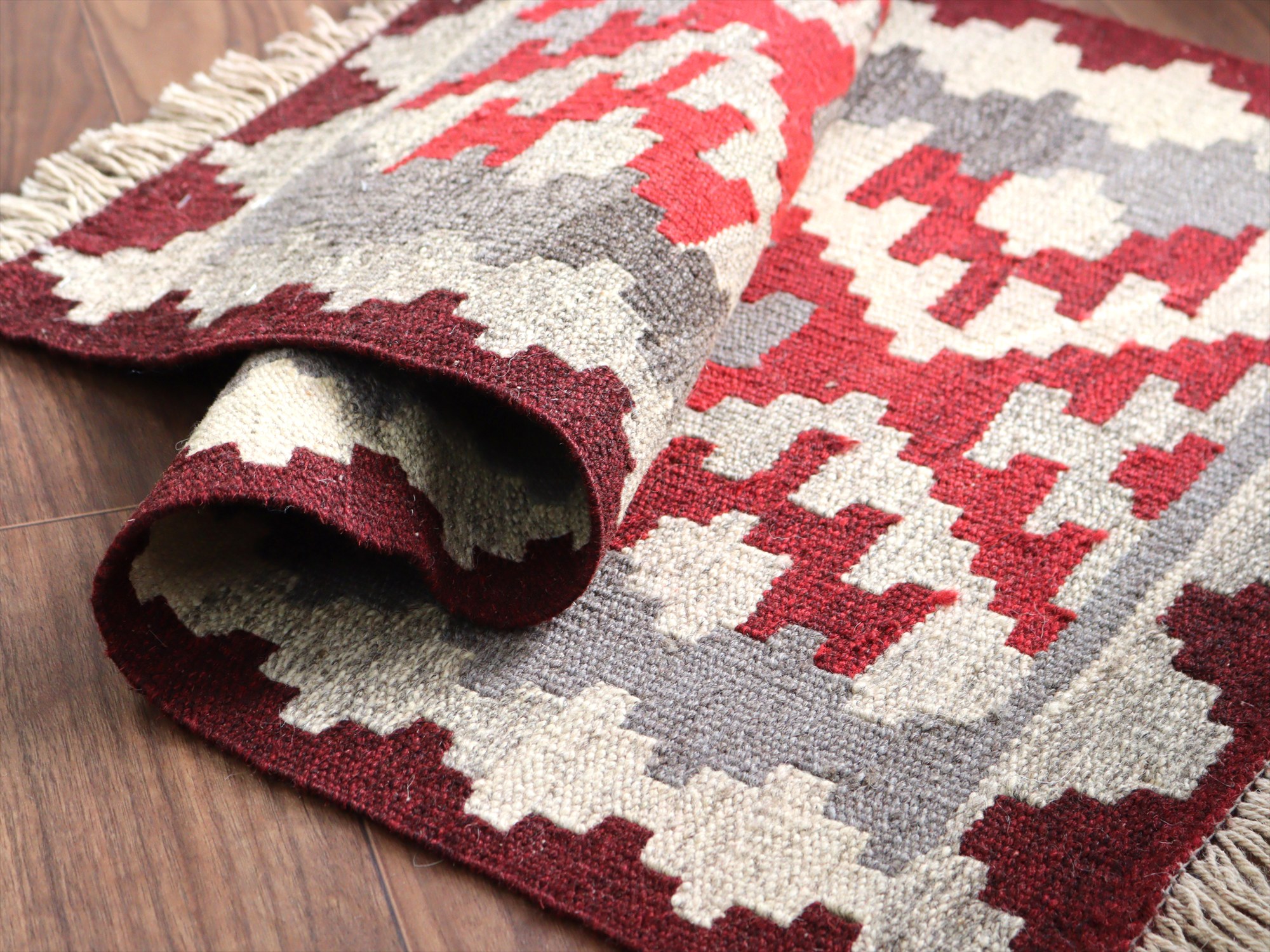 手織りキリム イラン シラーズ88×61cm カラフルな幾何学モチーフ