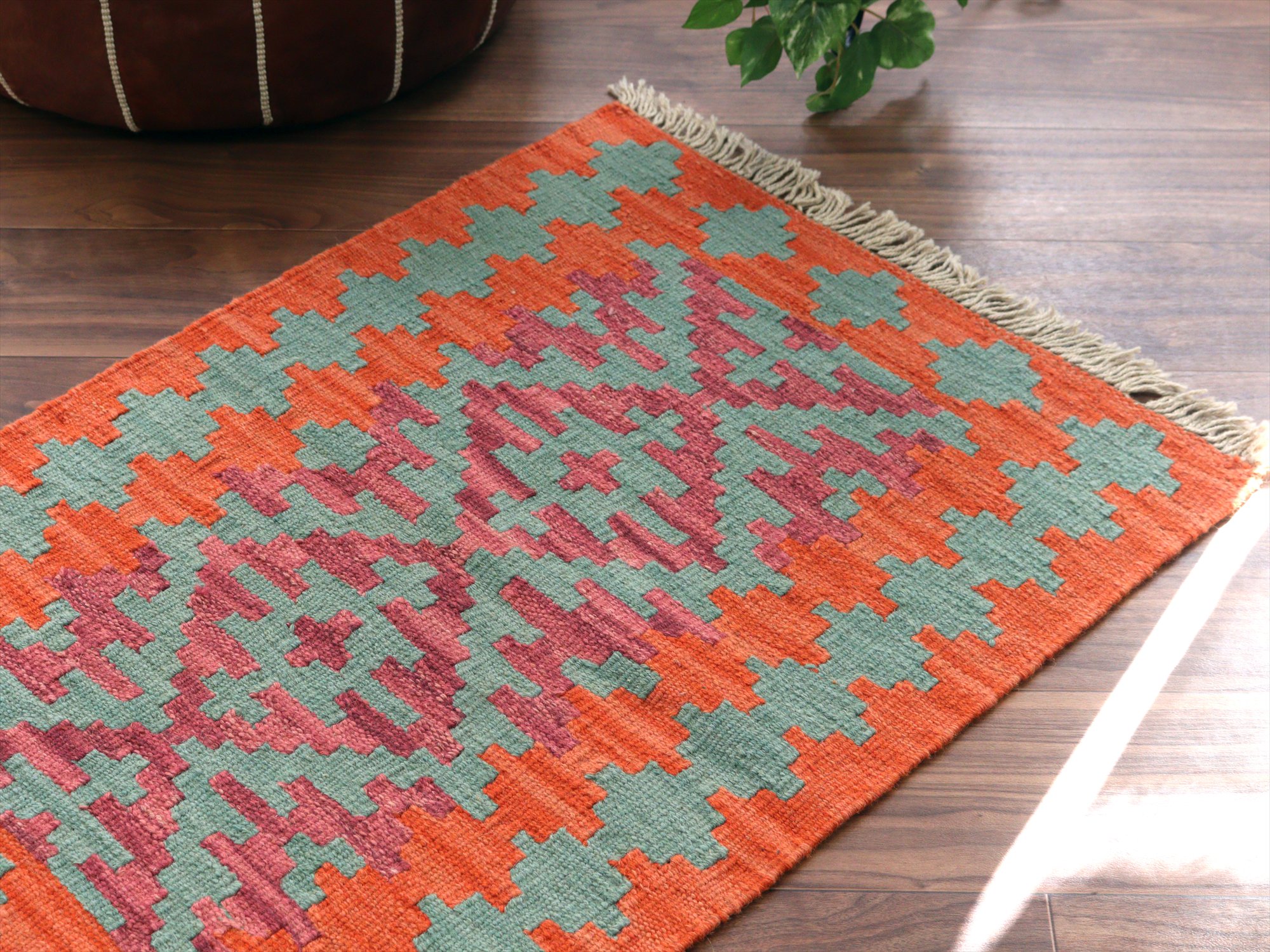 - 手織りキリム イラン シラーズ86×62cm カラフルな幾何学モチーフ