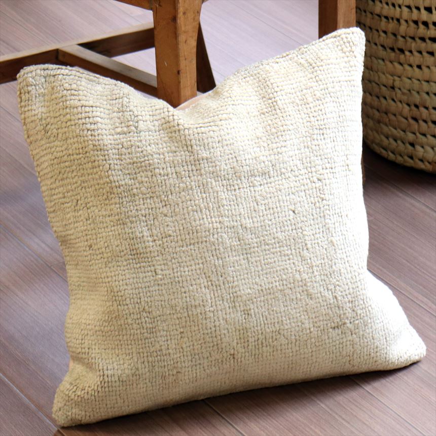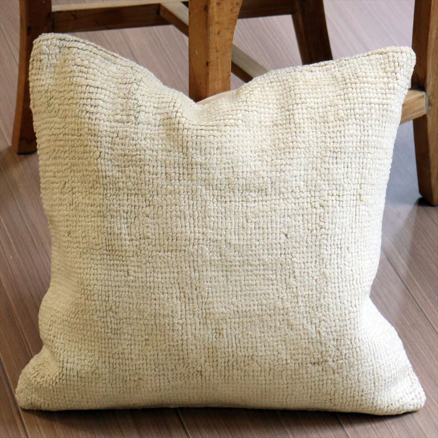 オールドカーペットをブリーチして作られたクッションカバー。モノトーン系の渋い色合いと、素朴で落ち着いた雰囲気が魅力的。