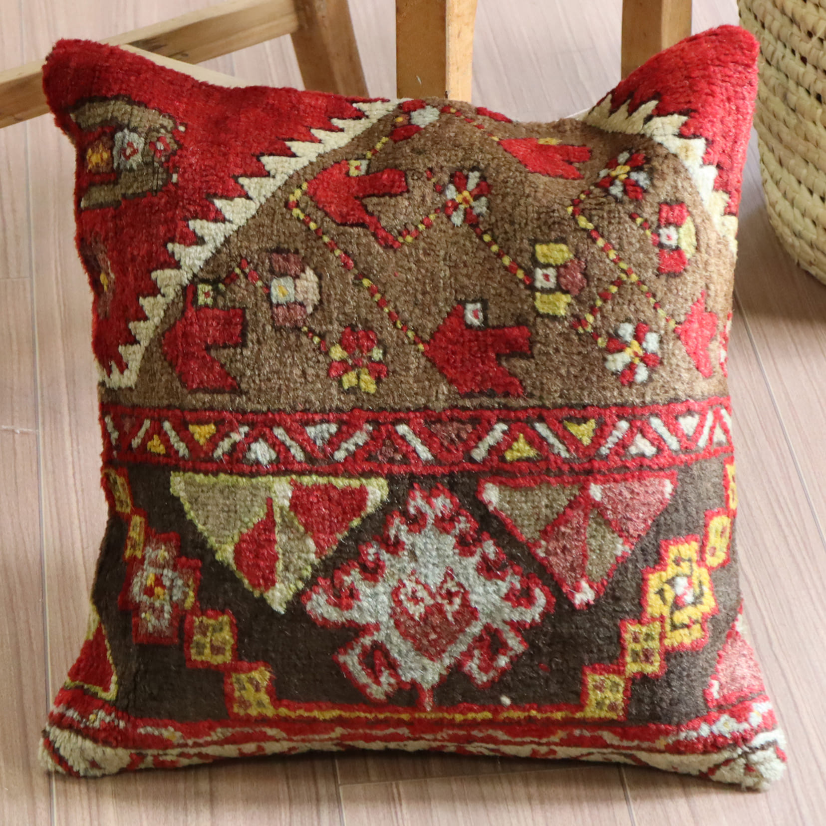 クッションカバー ヴィンテージ パイル織り 41×41cm トルコ絨毯 シワス地方