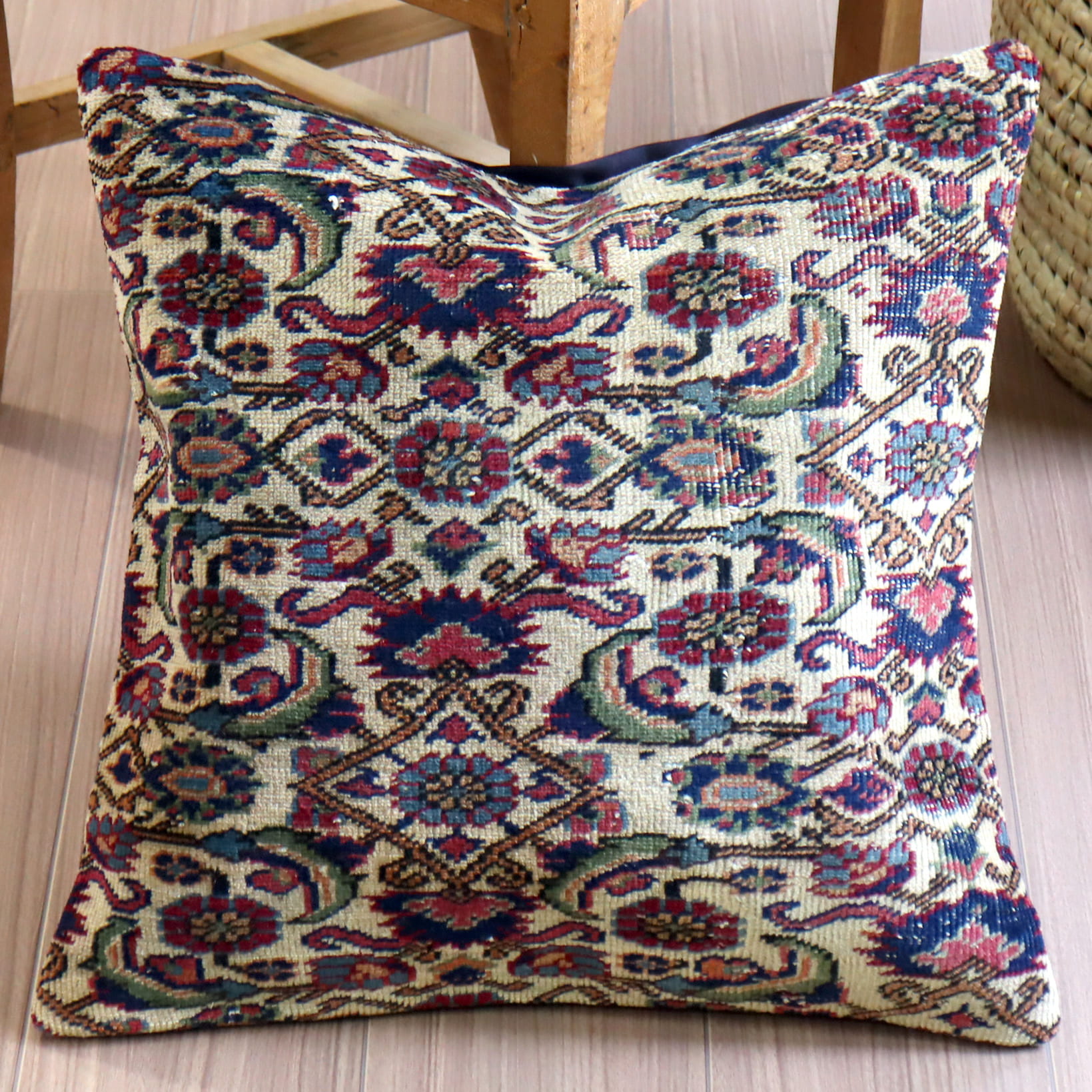 - クッションカバー ヴィンテージ パイル織り 46×46cm トルコ絨毯 フラワーデザイン