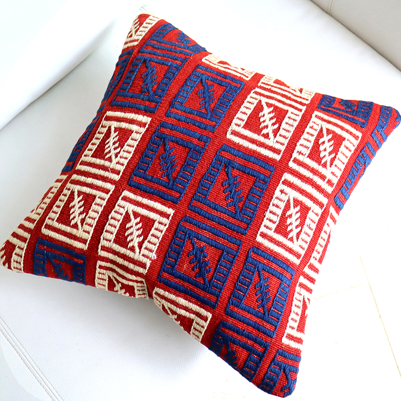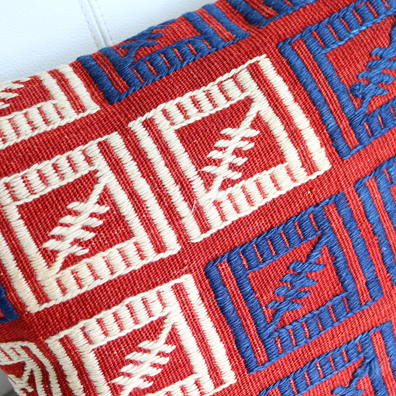 オールドキリムクッションカバー 40cm Old Kilim Cushion 四角形のジジム・ブルー&ホワイト