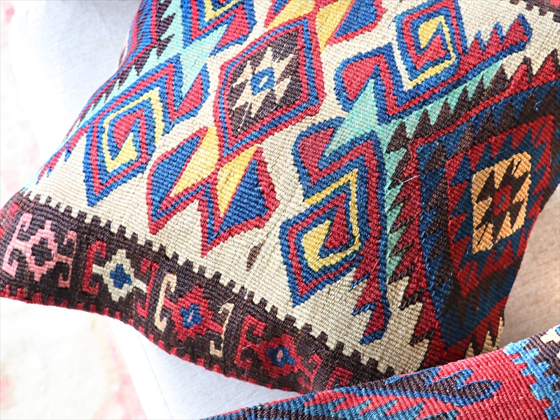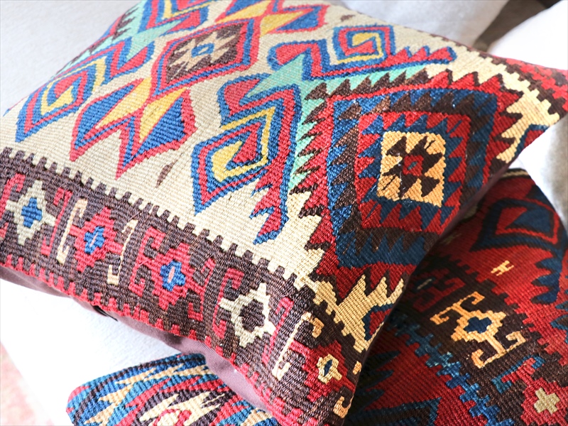 キリムクッション 40cm角サイズ /オールドキリムクッションカバー トルコ東部ワン地方
