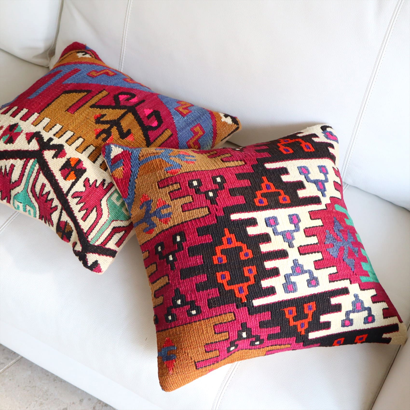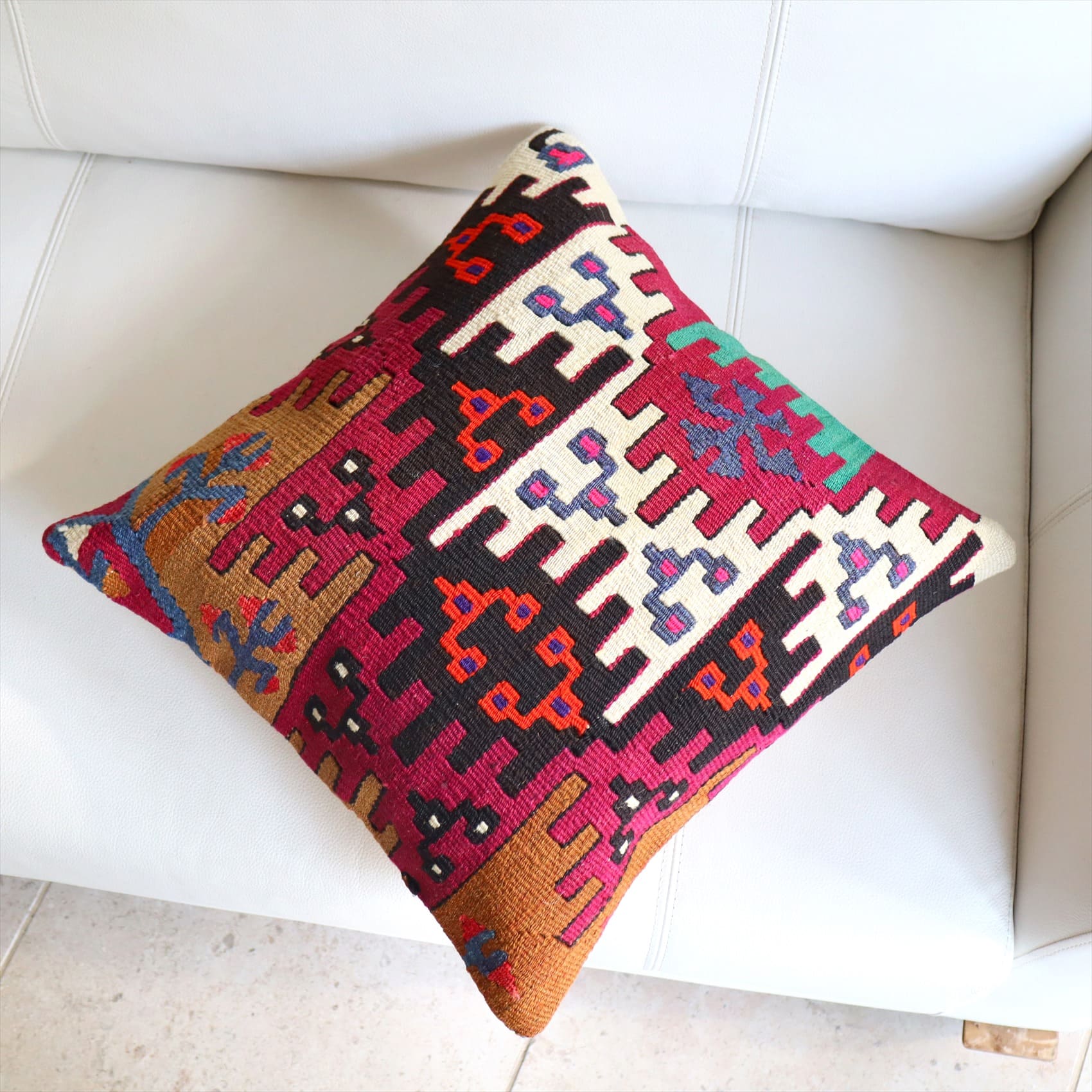 オールドキリム クッションカバー 40cmサイズ ジブリヒサル チフカナット ピンクパープル