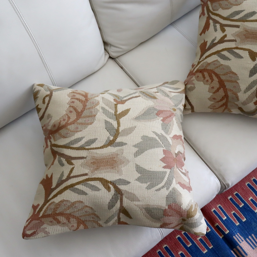 オールドキリムクッションカバー 40cm /Old Kilim Cushion ルーマニア ベージュ