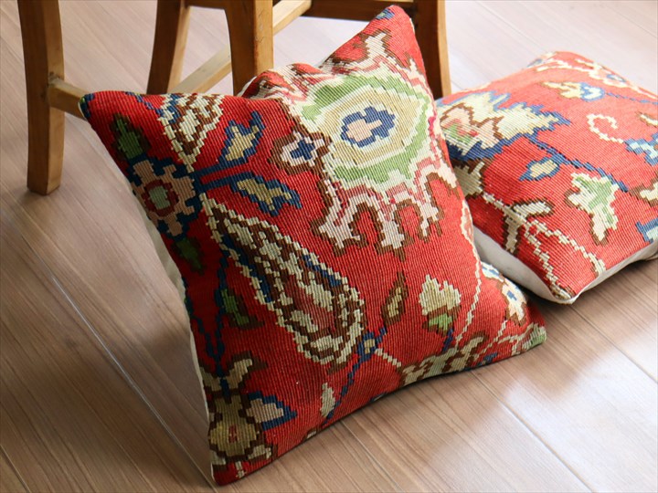 オールドキリム クッションカバー41×40cm ブルガリア・花とつる草 Old Kilim Cushion