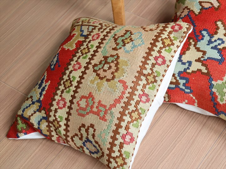 オールドキリム クッションカバー41×40cm ブルガリア・花とつる草 Old Kilim Cushion