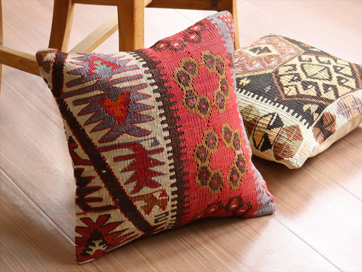 オールドキリム クッションカバー35×35cm カイセリ地方の伝統柄・連なる花 Old Kilim Cushion