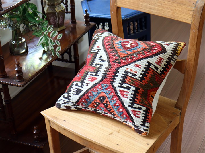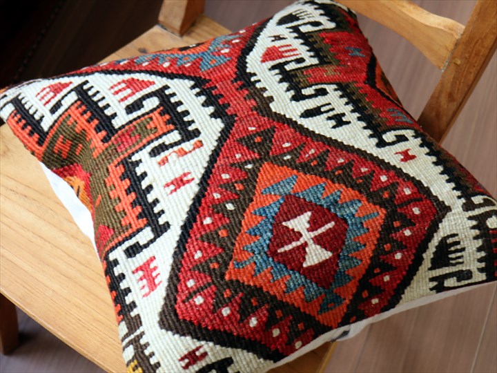 オールドキリム クッションカバー41×40cm カルス・幾何学モチーフ Old Kilim Cushion