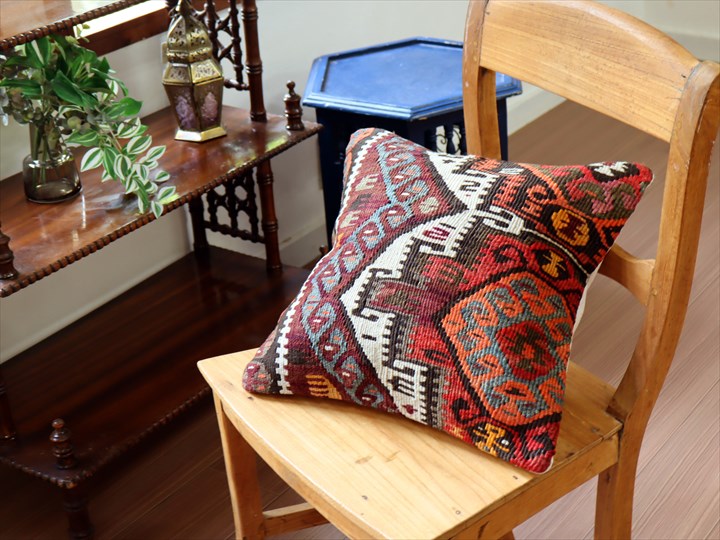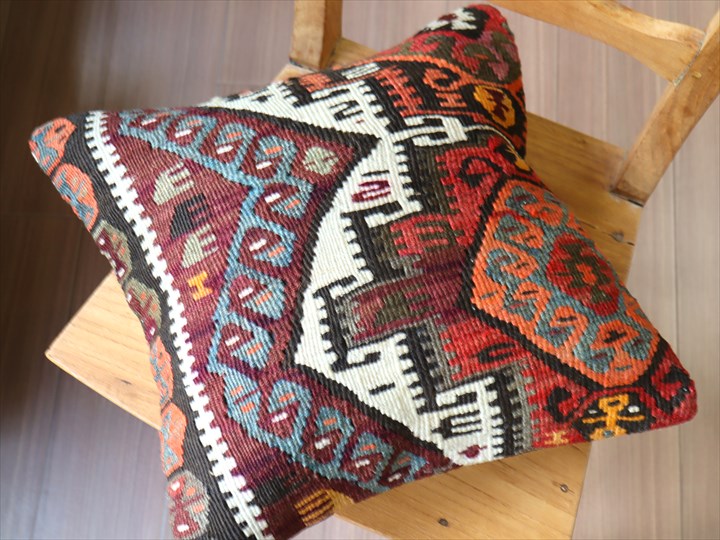オールドキリム クッションカバー41×40cm カルス・幾何学モチーフ Old Kilim Cushion