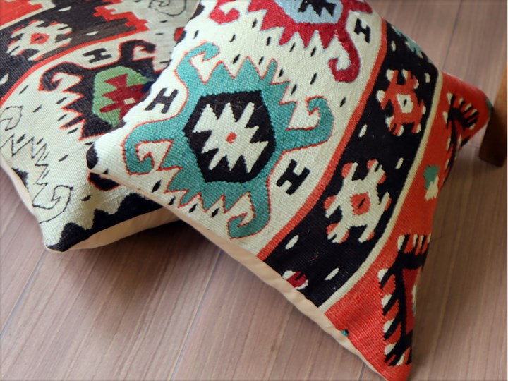 | 【オールドキリム】古い時代(主に1960-1980年代)に、一般の家庭で織られたウールの手織りキリムを表面に使ったクッションカバーです。擦り切れた個所や、日焼け、修理のあとなどがある場合がございますことをご了承ください。クッションはトルコで縫製されていて、縫製前にはきれいにクリーニングしてあります。 クッションカバーの裏面は無地のコットン、色はそれぞれ異なりますので表記してあります。 【お手入れについて】オールドキリムの染料が色落ちする場合がありますのでほかのものと一緒に洗わないようご注意ください。液体洗剤で押し洗いしたあと、よくすすいで、フラットにして乾かしてください。 |