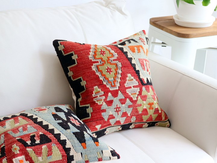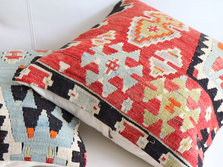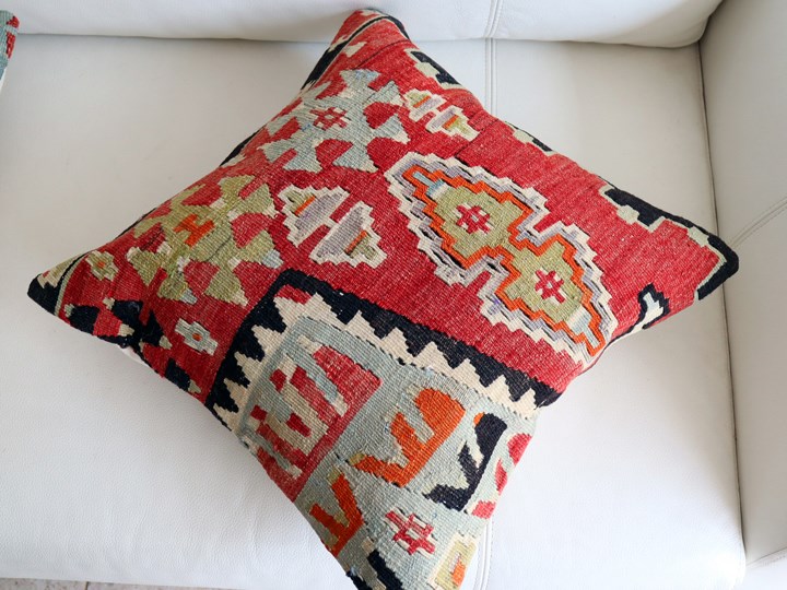 | 【オールドキリム】古い時代(主に1960-1980年代)に、一般の家庭で織られたウールの手織りキリムを表面に使ったクッションカバーです。擦り切れた個所や、日焼け、修理のあとなどがある場合がございますことをご了承ください。クッションはトルコで縫製されていて、縫製前にはきれいにクリーニングしてあります。 クッションカバーの裏面は無地のコットン、色はそれぞれ異なりますので表記してあります。 【お手入れについて】オールドキリムの染料が色落ちする場合がありますのでほかのものと一緒に洗わないようご注意ください。液体洗剤で押し洗いしたあと、よくすすいで、フラットにして乾かしてください。 |