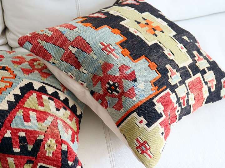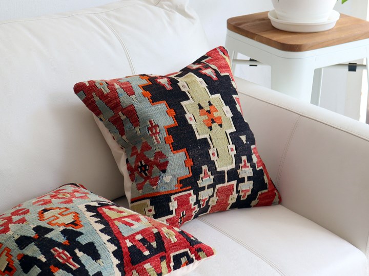 | 【オールドキリム】古い時代(主に1960-1980年代)に、一般の家庭で織られたウールの手織りキリムを表面に使ったクッションカバーです。擦り切れた個所や、日焼け、修理のあとなどがある場合がございますことをご了承ください。クッションはトルコで縫製されていて、縫製前にはきれいにクリーニングしてあります。 クッションカバーの裏面は無地のコットン、色はそれぞれ異なりますので表記してあります。 【お手入れについて】オールドキリムの染料が色落ちする場合がありますのでほかのものと一緒に洗わないようご注意ください。液体洗剤で押し洗いしたあと、よくすすいで、フラットにして乾かしてください。 |