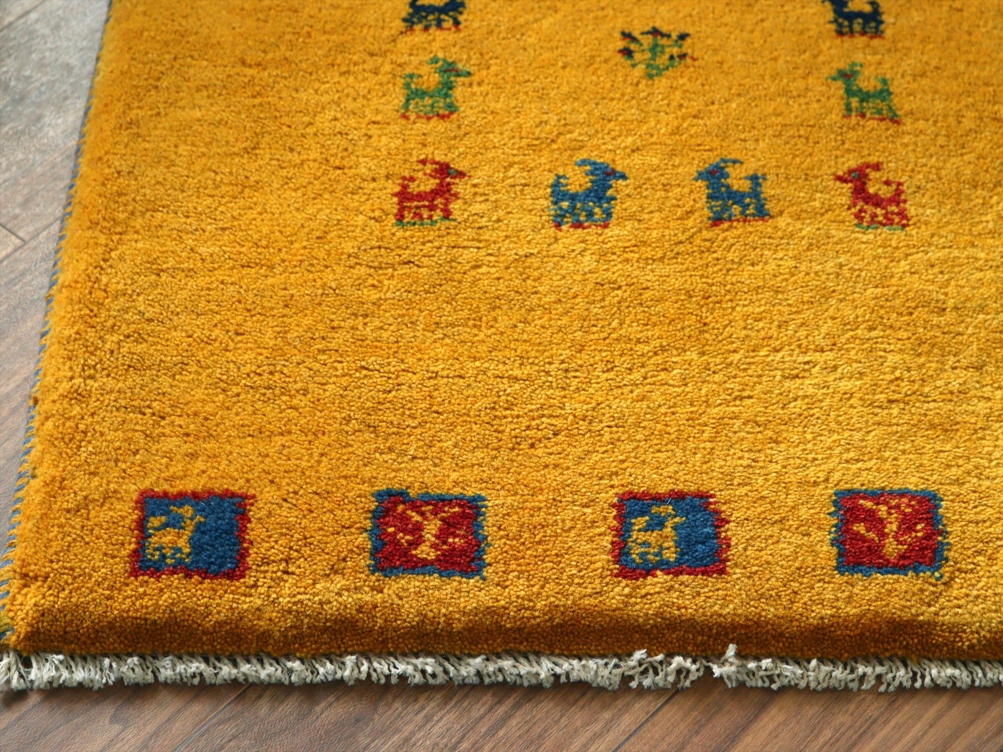 ギャッベ イラン産手織りラグ 90x65cm イエロー タイル