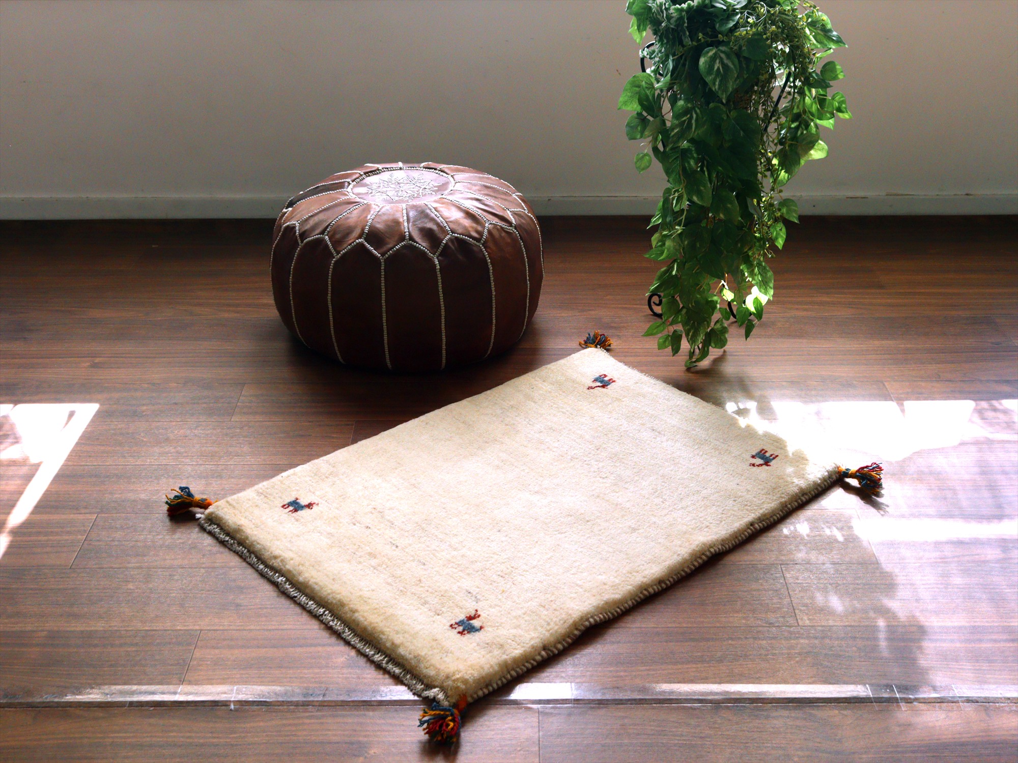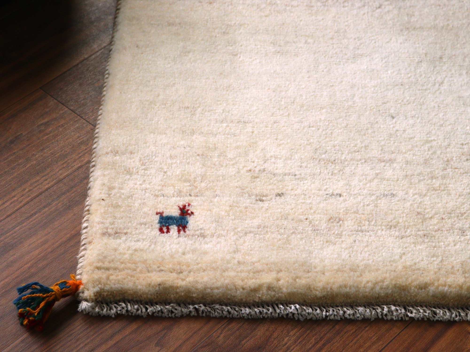 Key:ギャッベ, ギャベ, アイボリー, 白, ラグ, 絨毯, イラン, シラーズ, ペルシャ, バザールギャッベ, ポンポン, 手織り, 一点もの, 玄関マット, ふかふか, Gabbeh, Tribal rug, Shiraz, Fars, Iran, Persia, Wool, 一点もの, 現品販売,ガラタバザール