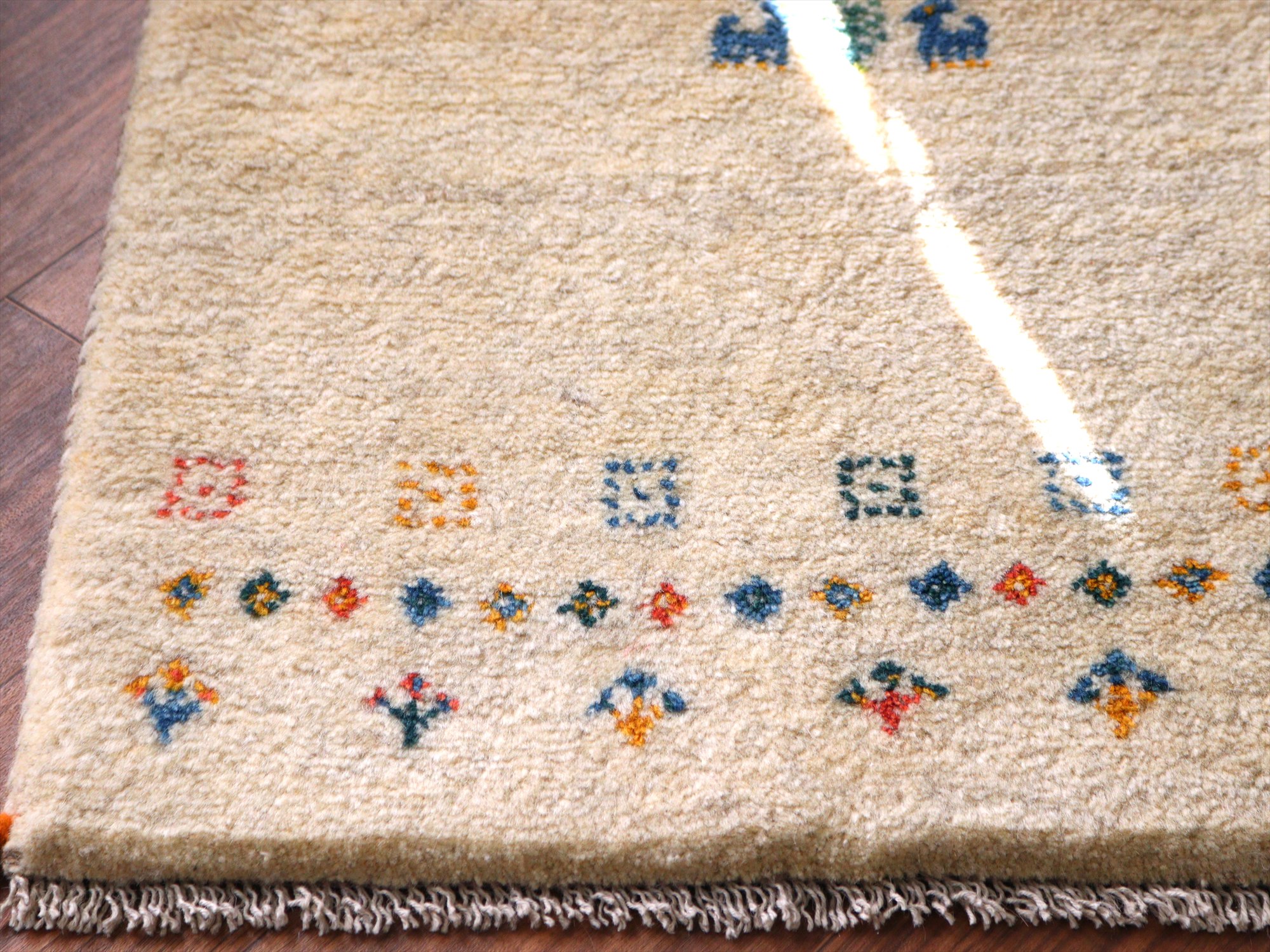 - ギャッベ イラン産手織りラグ 92x60cm 動物と植物 アイボリー