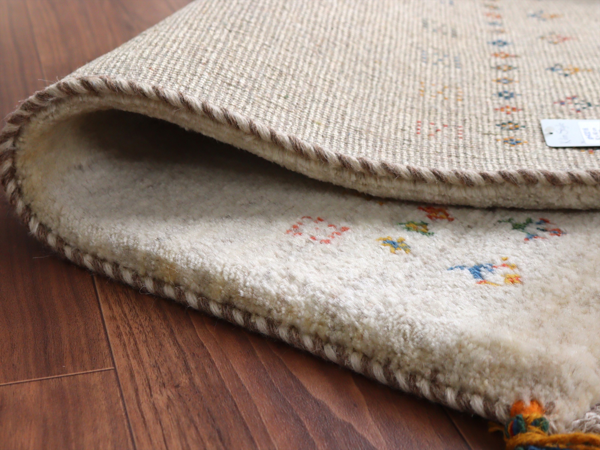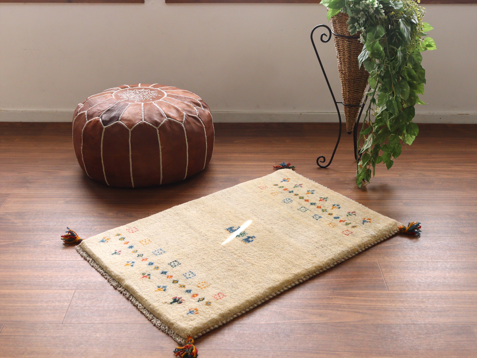 Key:ギャッベ, ギャベ, アイボリー, 白, ラグ, 絨毯, イラン, シラーズ, ペルシャ, バザールギャッベ, ポンポン, 手織り, 一点もの, 玄関マット, ふかふか, Gabbeh, Tribal rug, Shiraz, Fars, Iran, Persia, Wool, 一点もの, 現品販売,ガラタバザール
