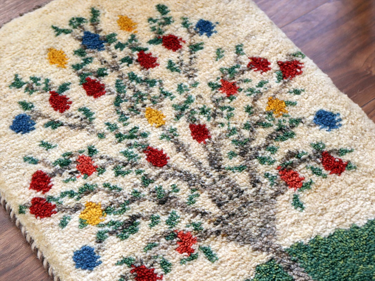 - ギャッベ ミニギャベ イラン産 55×40cm ナチュラルアイボリー カラフルなザクロの樹
