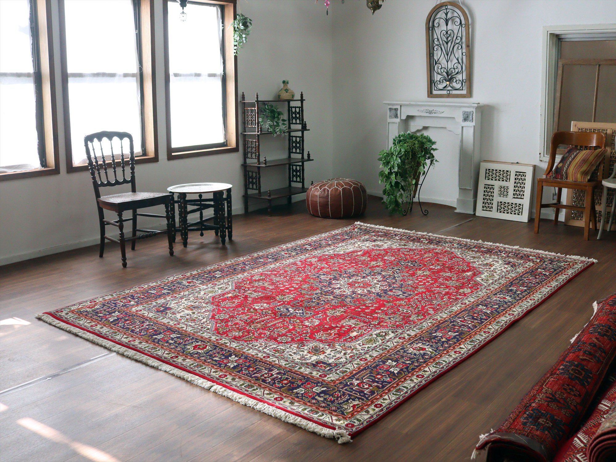 | 一面が花模様で構成されたタブリーズ産の絨毯。華やかで優雅なデザインと力強いレッドのバランスが絶妙です。 |