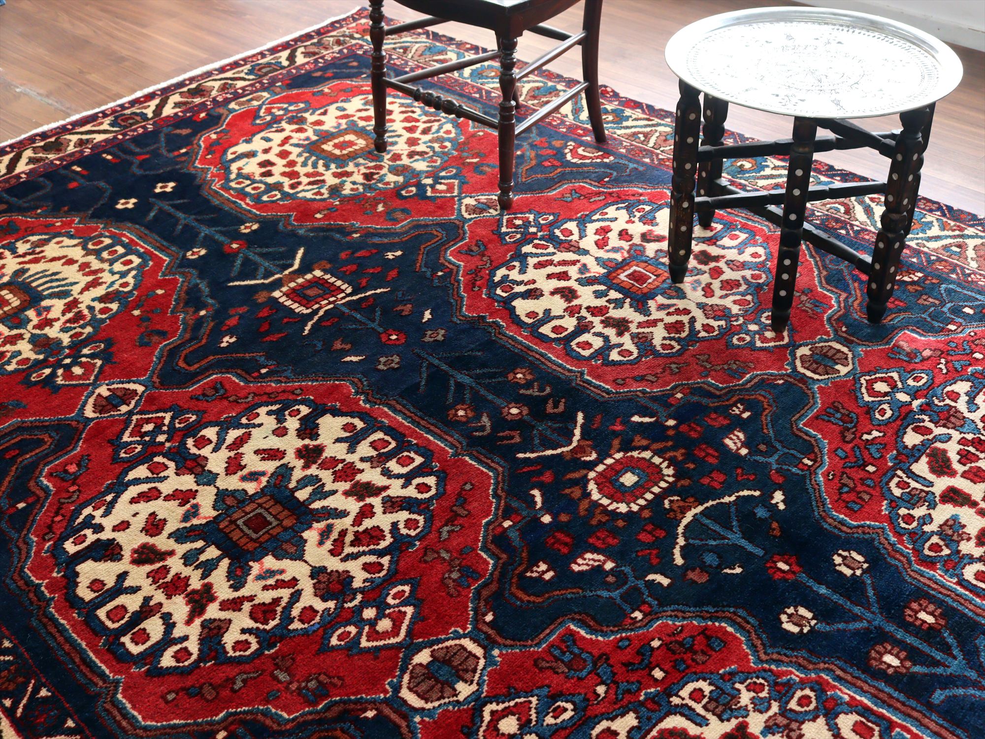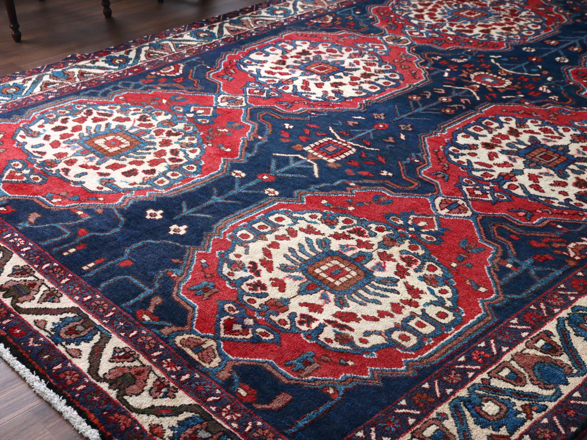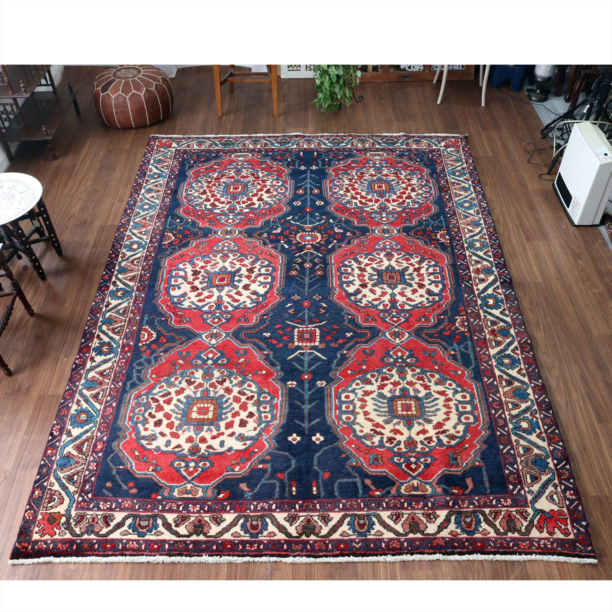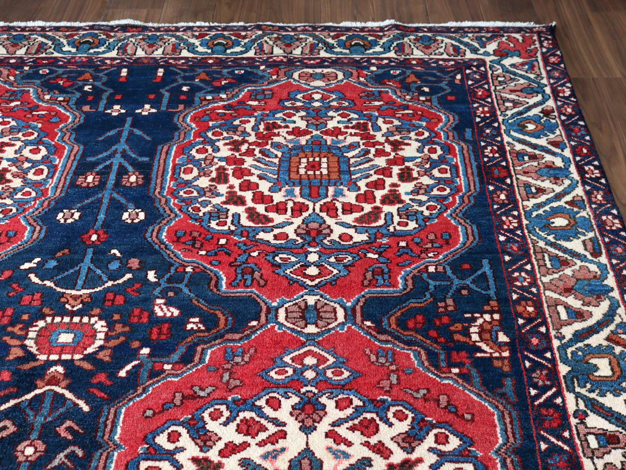 イランの手織り絨毯 バクティアリ族299×216cm 花形のメダリオン 手織りラグ