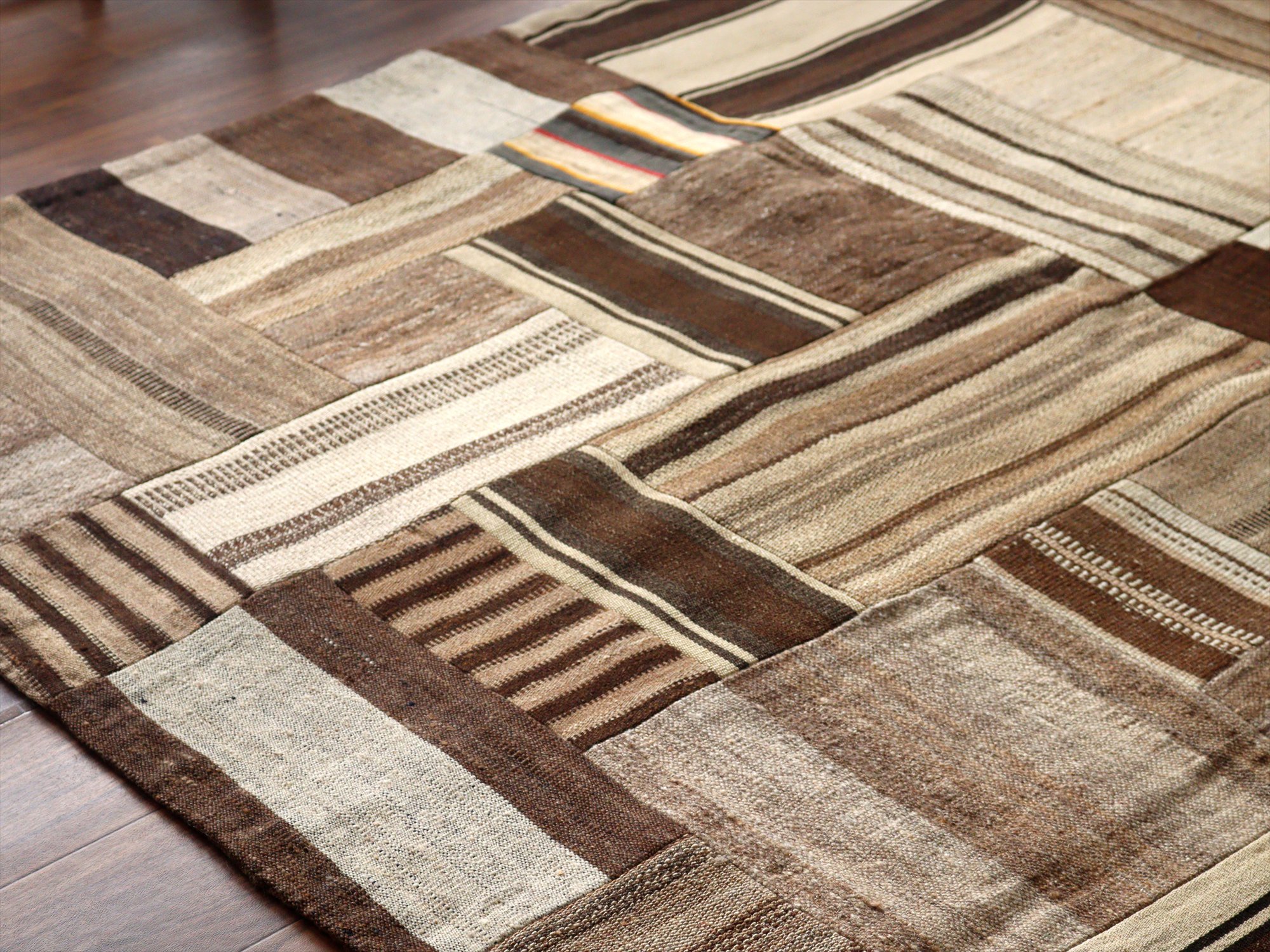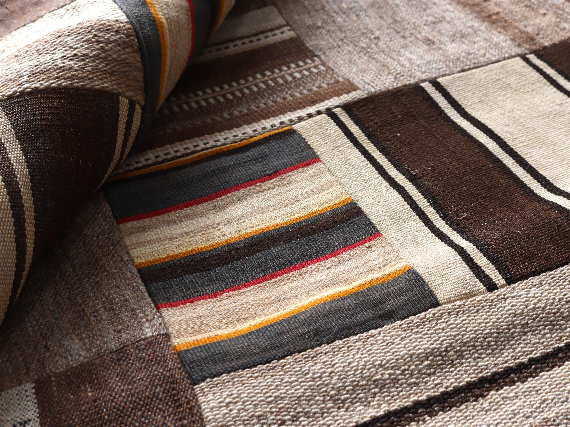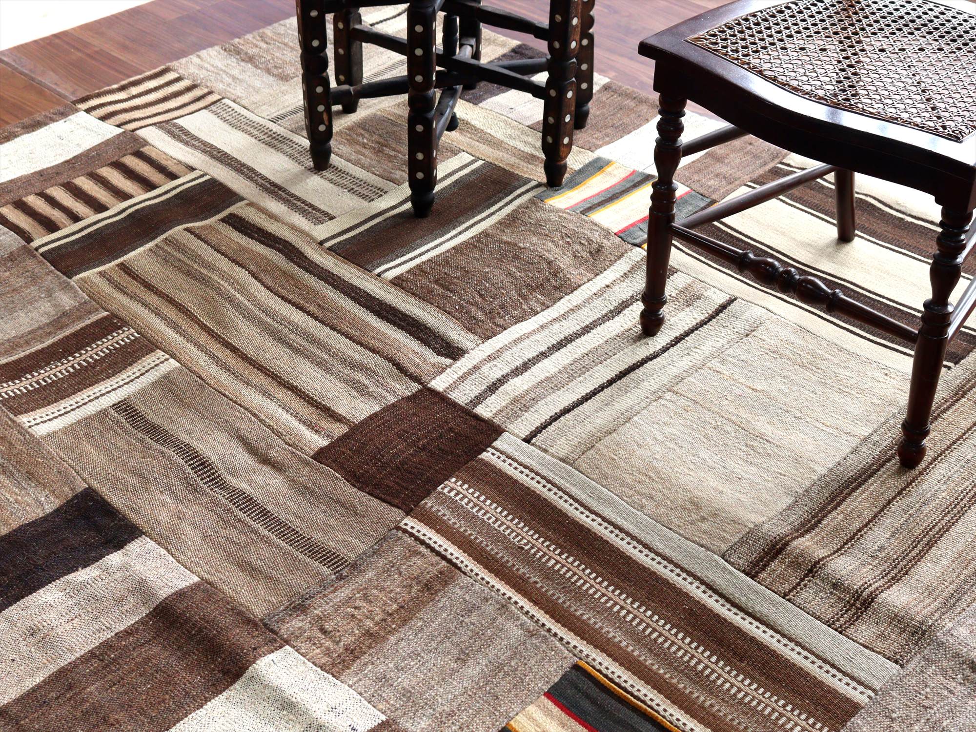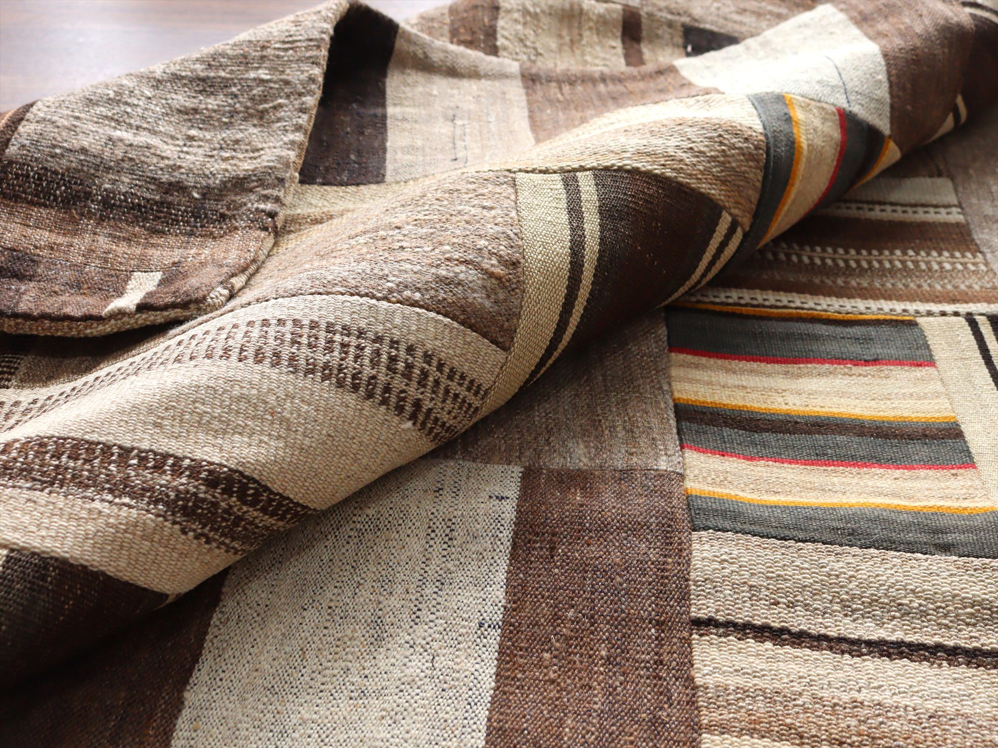 パッチワークキリム 表裏両面のリバーシブルタイプ201×153cm 無染色のナチュラルカラー