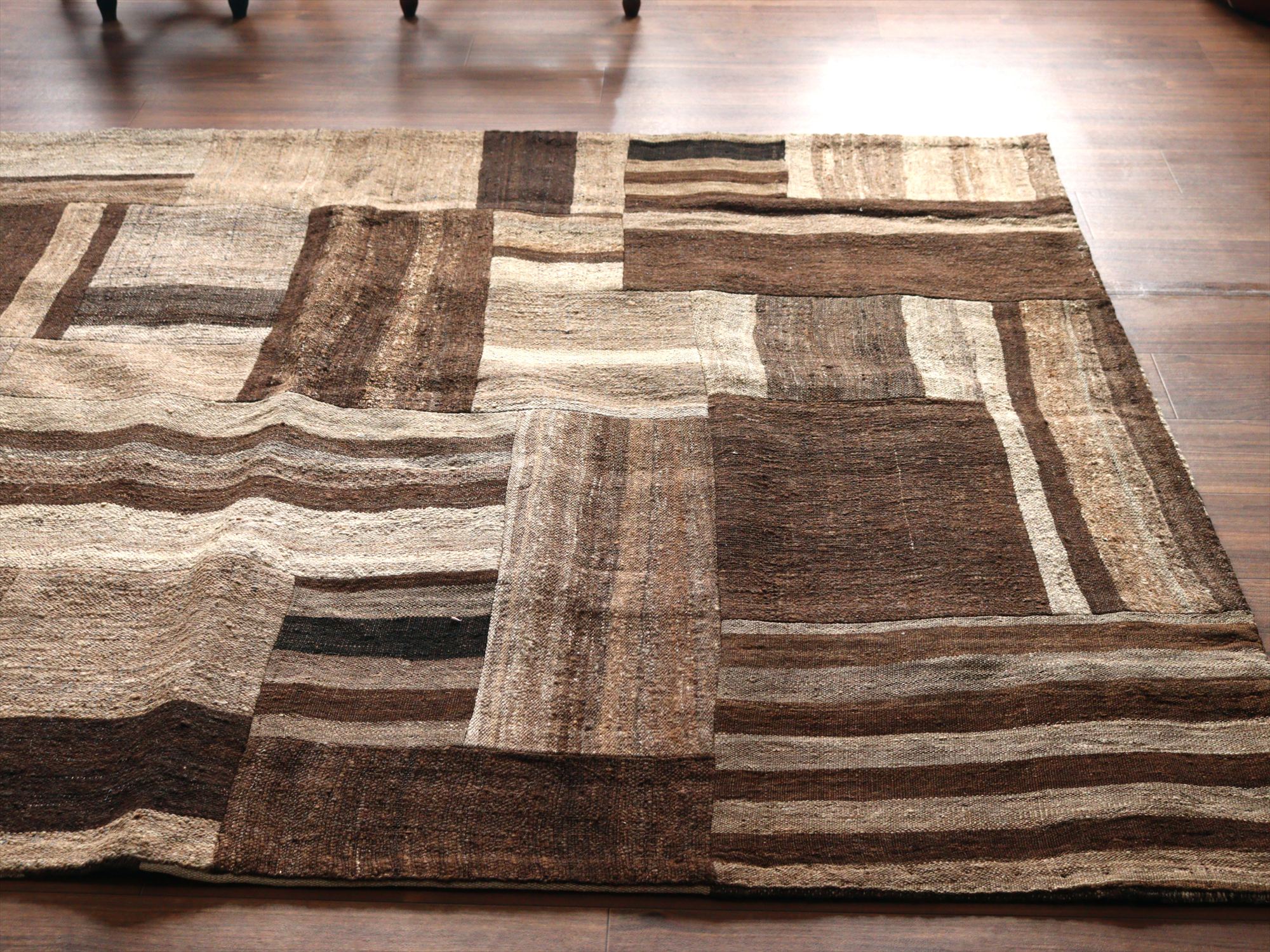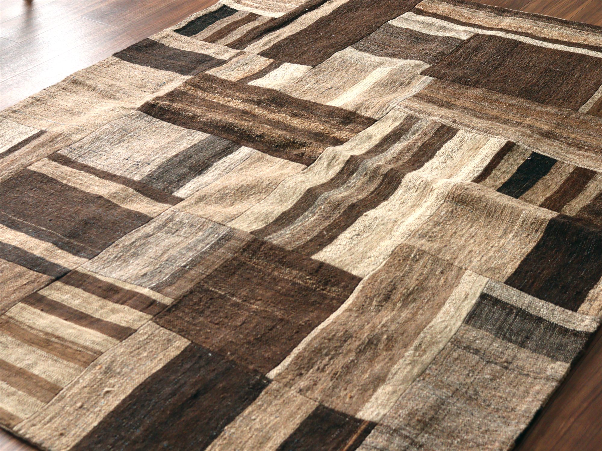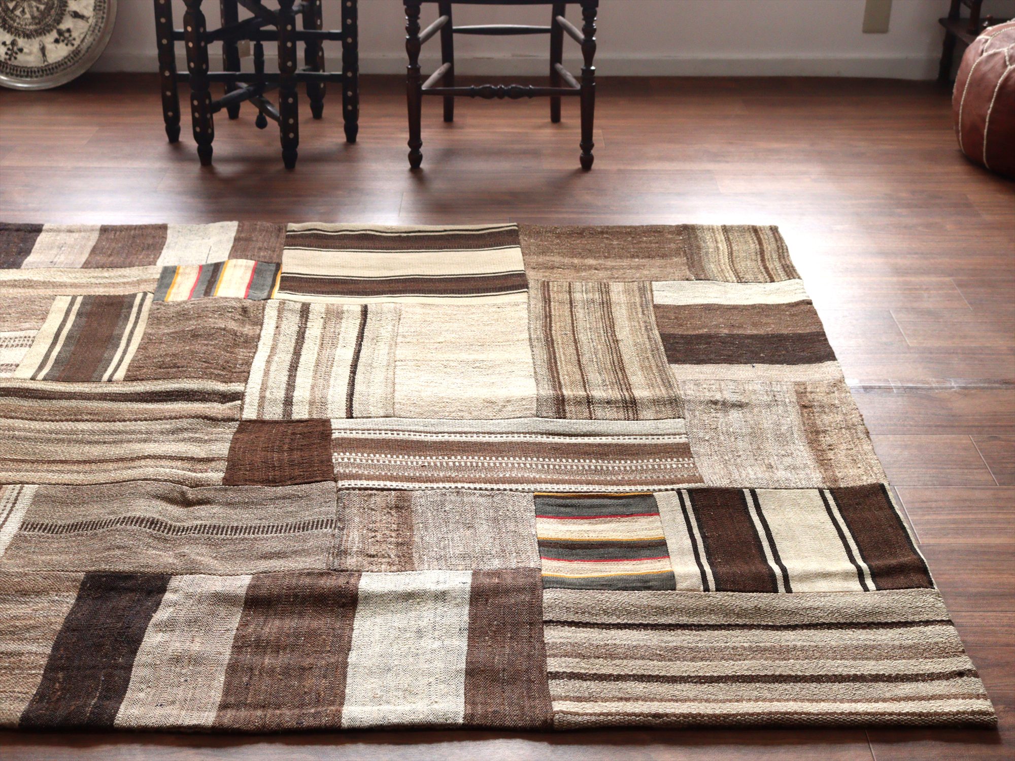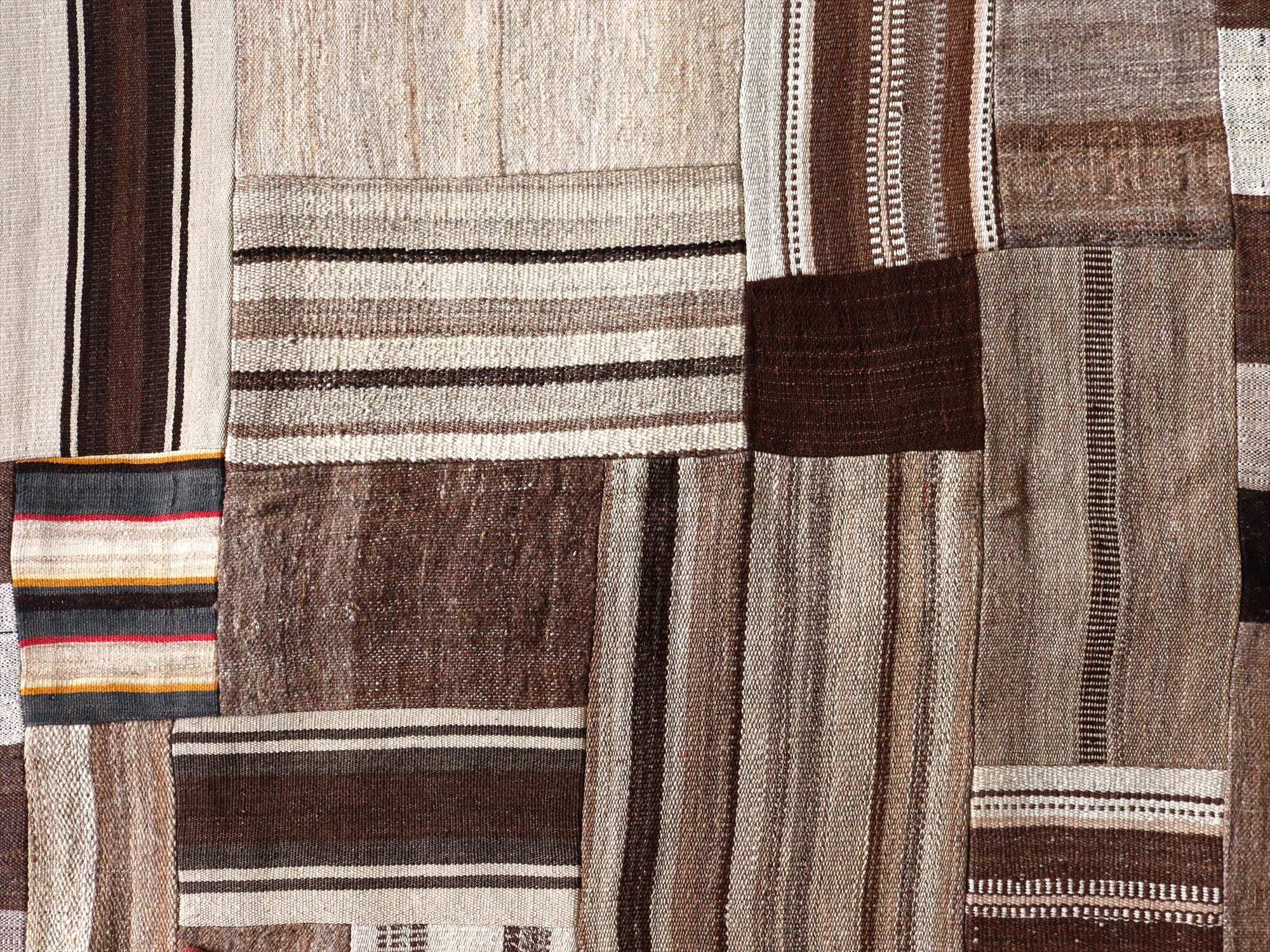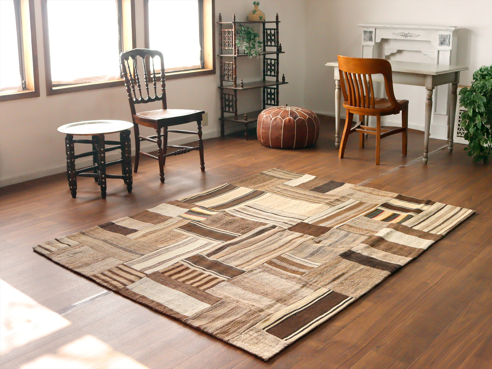 パッチワークキリム 表裏両面のリバーシブルタイプ201×153cm 無染色のナチュラルカラー