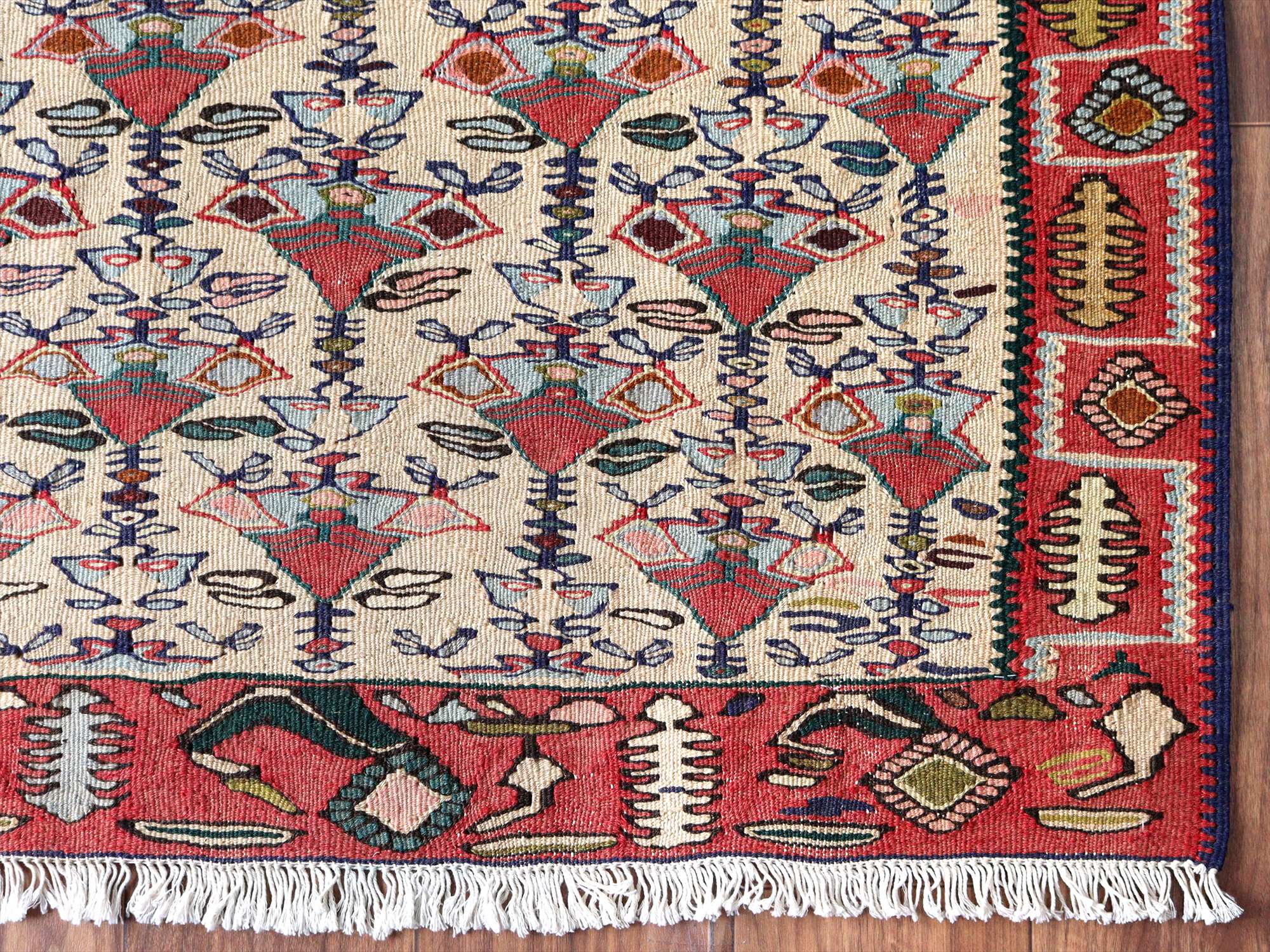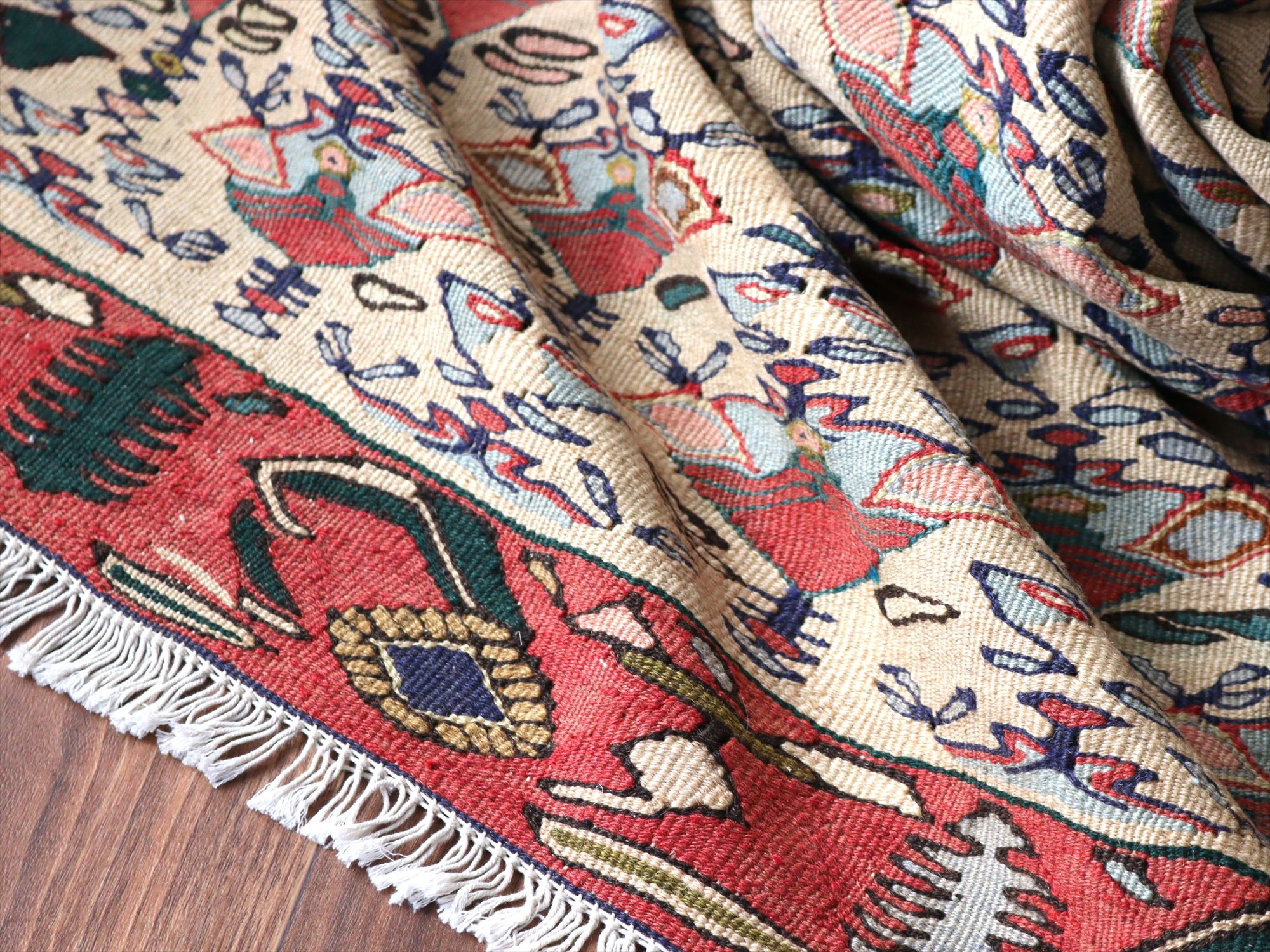 イランの手織りキリム セネ144×119cm 花束のモチーフ