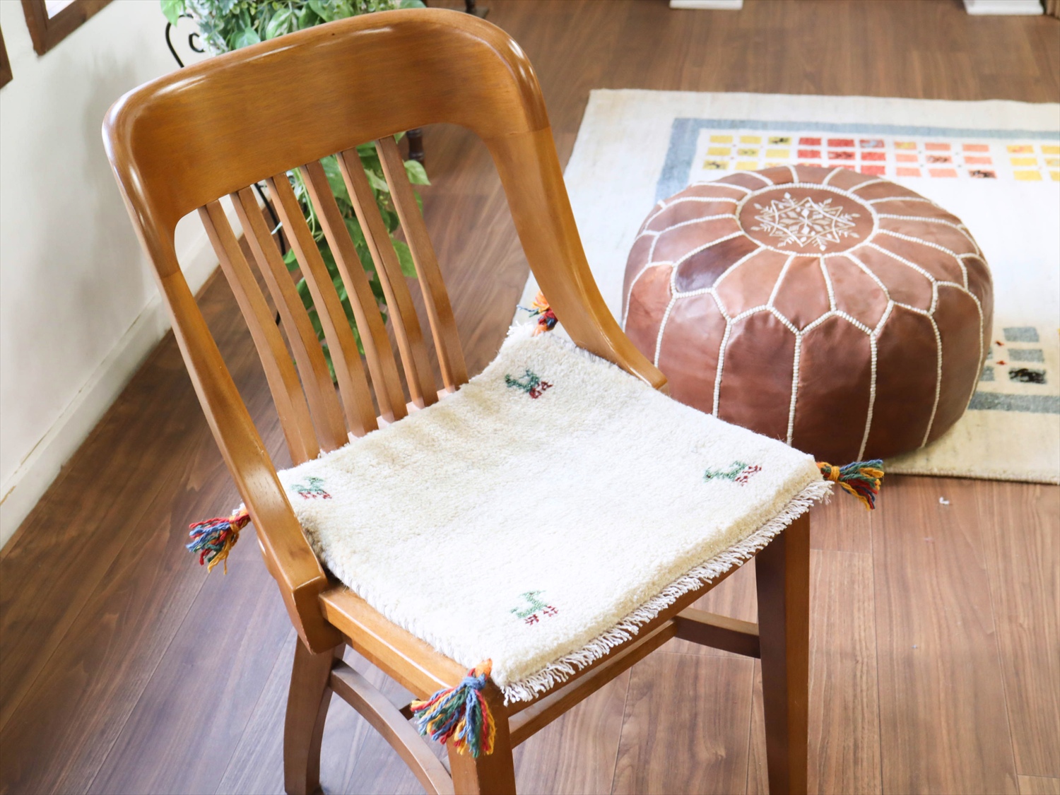 - ギャッベ イラン産手織り 座布団サイズ 40x41cm ナチュラルアイボリー 無地 シンプル
