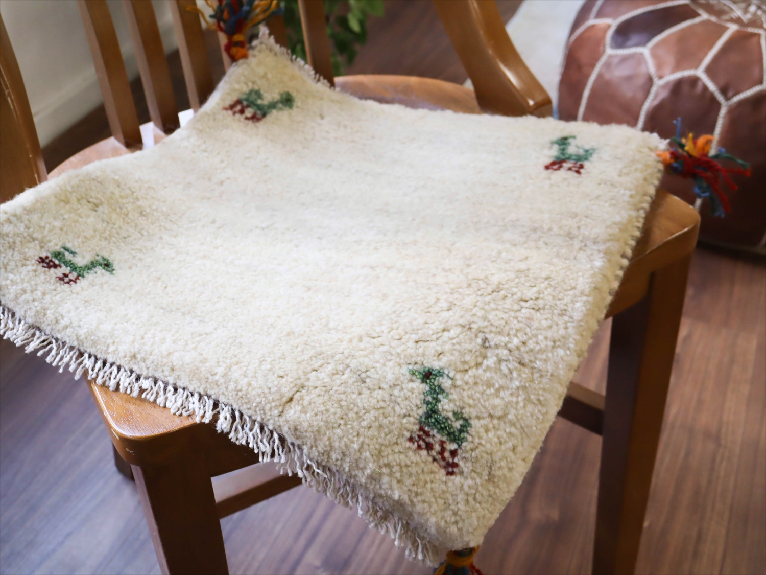 ギャッベ イラン産手織り 座布団サイズ 40x41cm ナチュラルアイボリー 無地 シンプル