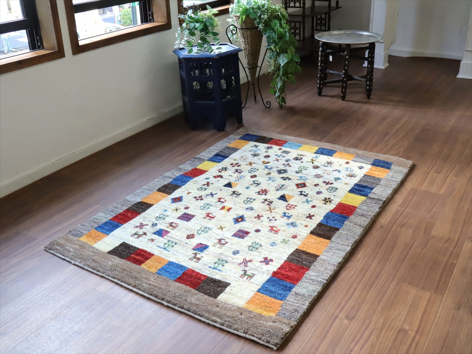 Key:ラグ,リビング,居間,カーペット,ソファ前,rug,carpet,ギャッベ,ギャベ,手織り,hand weaven, イラン直輸入, カシュカイ, ウール製, Shiraz, Area Rug, Handmade,,東京、中野区,実店舗