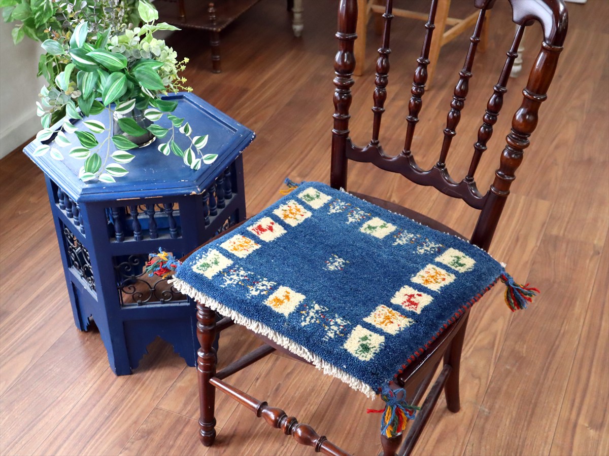 Key:ギャッベ ギャベ Gabbeh, イラン, 遊牧民, 手織り, 手紡ぎ, ペルシャ, 手織り絨毯, 部族絨毯, トライバルラグ, 座布団ギャッベ, 1点もの, 現品販売, ウール100%, ブルー, 青, 紺, インディゴ, 藍染, 天然繊維 ミニギャベ, Gabbeh, Iran Persian rug, Hand Knotted, ガラタバザール