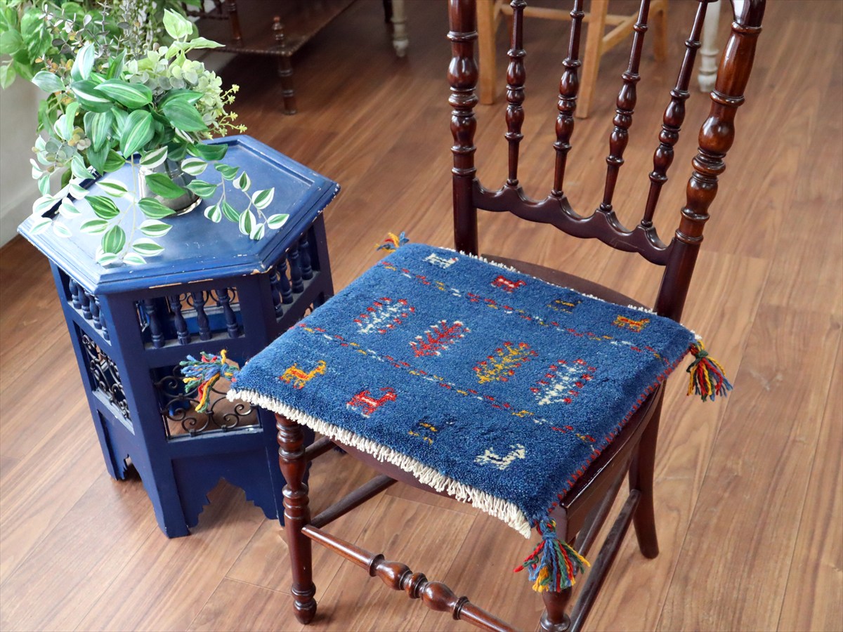 Key:ギャッベ ギャベ Gabbeh, イラン, 遊牧民, 手織り, 手紡ぎ, ペルシャ, 手織り絨毯, 部族絨毯, トライバルラグ, 座布団ギャッベ, 1点もの, 現品販売, ウール100%, ブルー, 青, 紺, インディゴ, 藍染, 天然繊維 ミニギャベ, Gabbeh, Iran Persian rug, Hand Knotted, ガラタバザール
