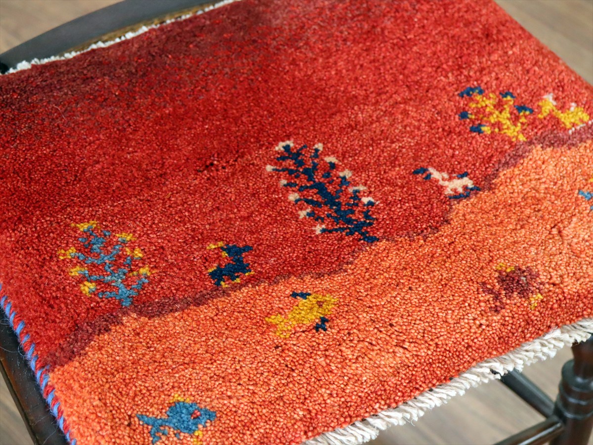 ギャッベ イラン産手織り 座布団サイズ38×45cm レッド 生命の樹と動物 風景画