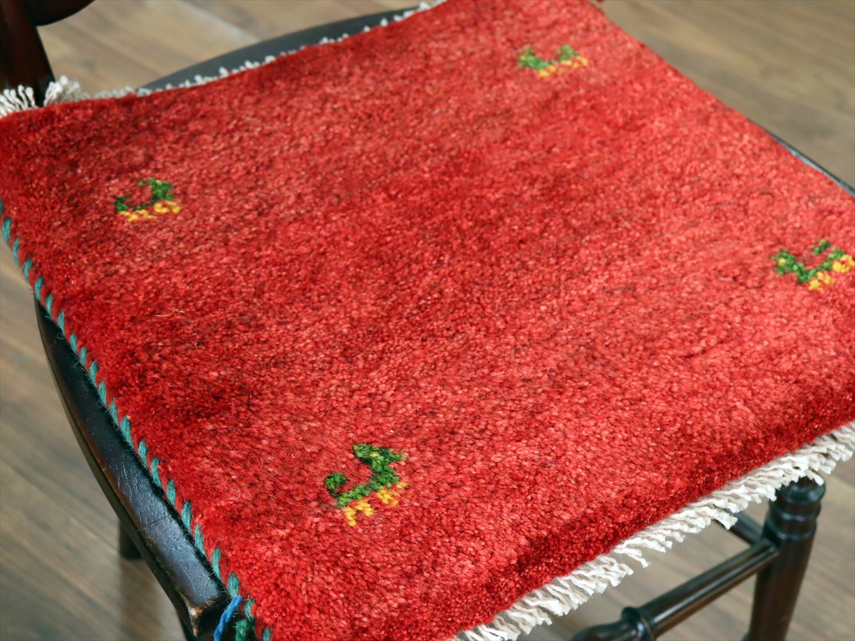 ギャッベ イラン産手織り 座布団サイズ41×42cm レッド 動物モチーフ