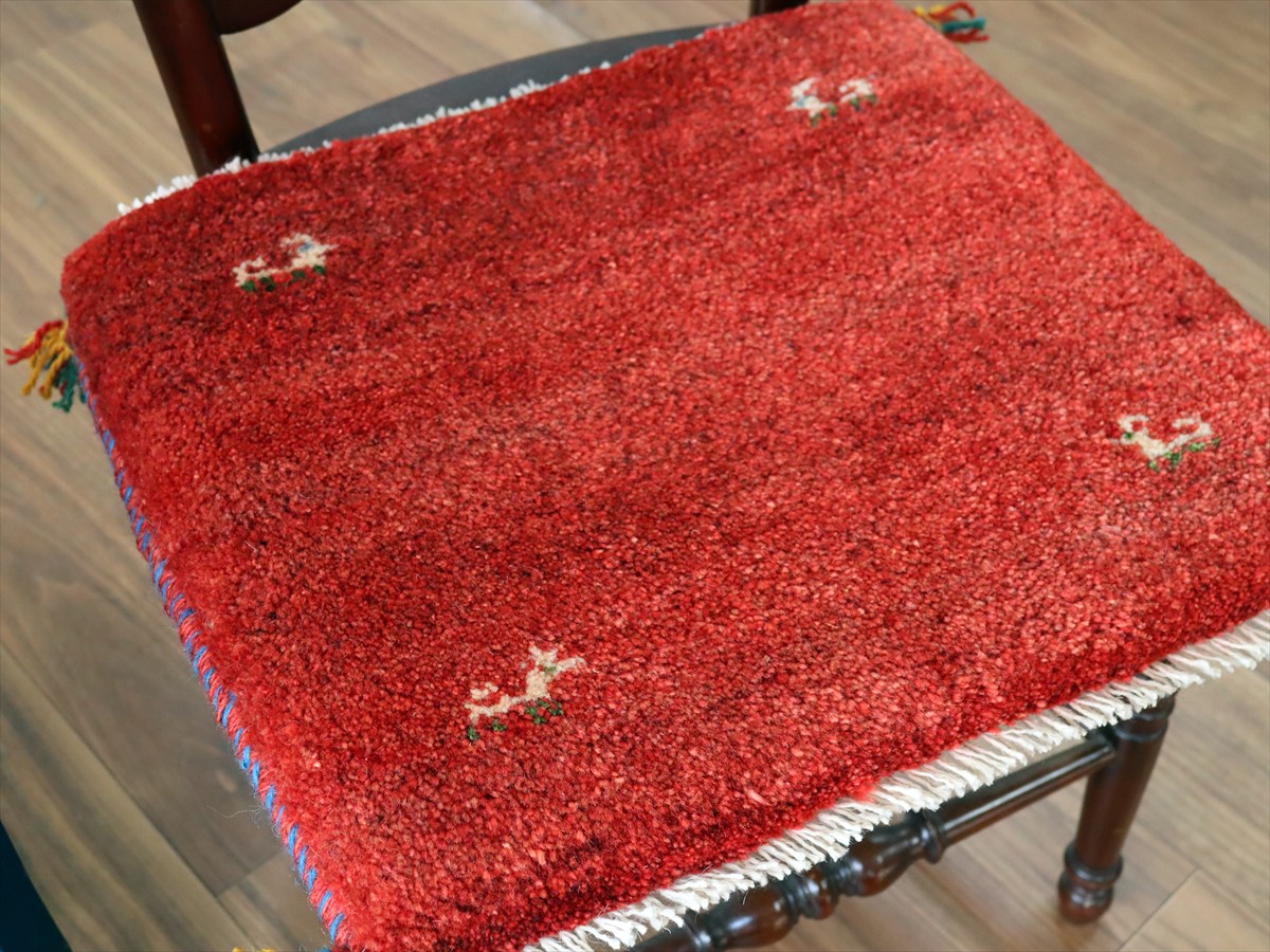 ギャッベ イラン産手織り 座布団サイズ41×46cm レッド 動物モチーフ