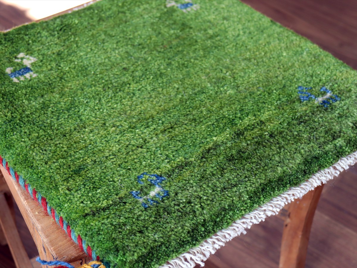 ギャッベ イラン産手織り 座布団サイズ41×42cm グリーン 動物モチーフ