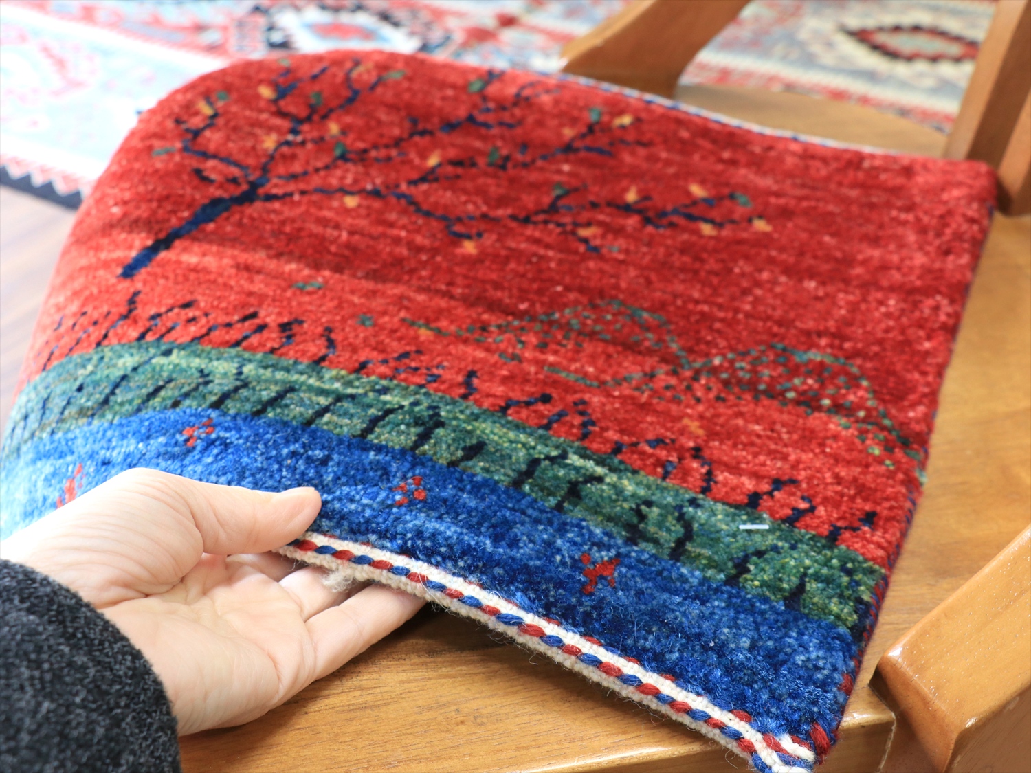 Key:ラグ, カーペット, rug, carpet, Nomad, 遊牧民, ギャッベ, ギャベ, 手織り, hand notted, The Tree OF Life, 座布団ギャッベ, イラン直輸入, カシュカイ, ウール100%, 一点もの, 現品販売, Shiraz, Area Rug, Handmade, 東京, 中野区, 実店舗, ガラタバザール