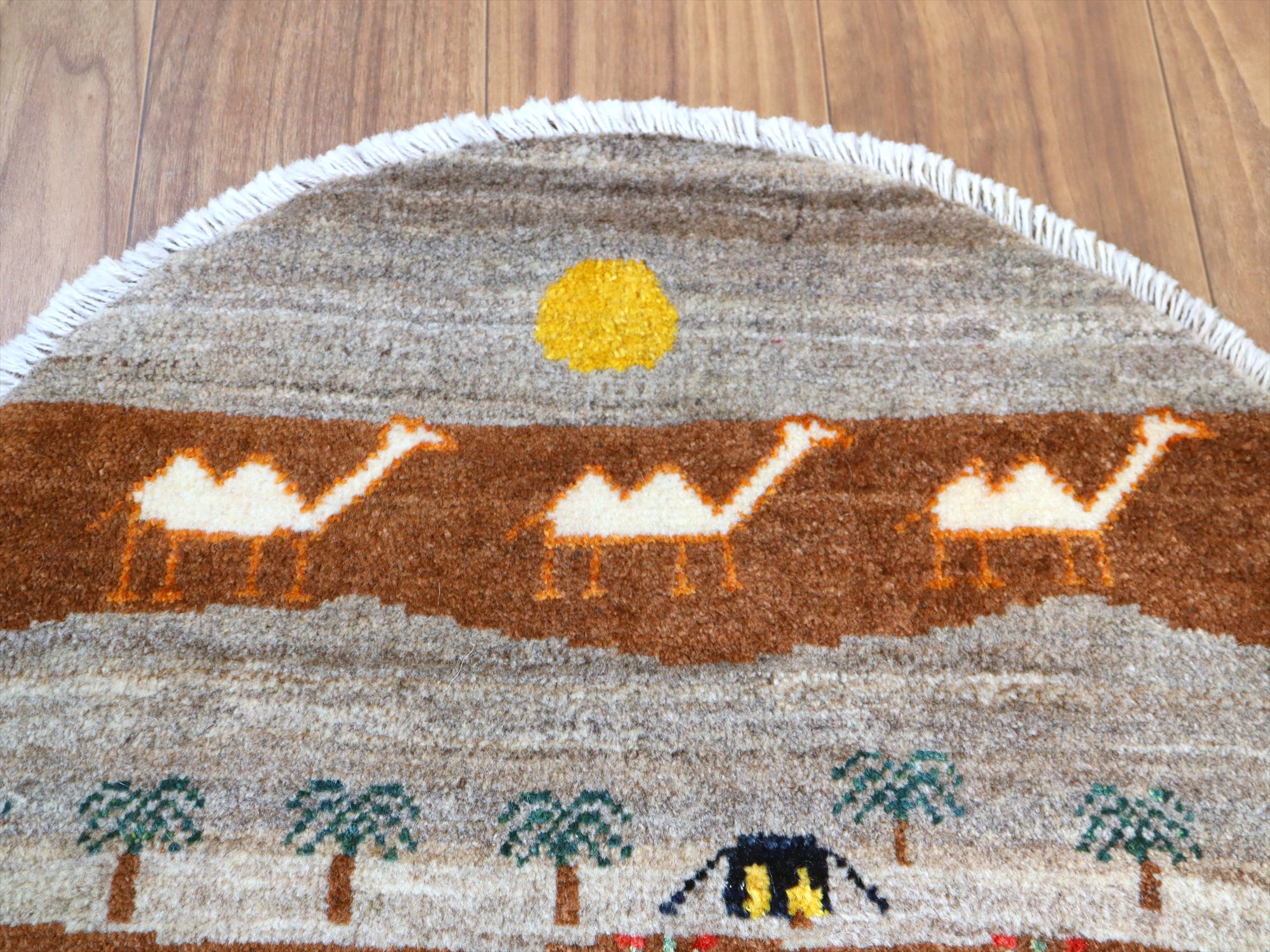 ギャッベ 円形 風景のギャッベ 60x60cm 黒いテントとラクダ